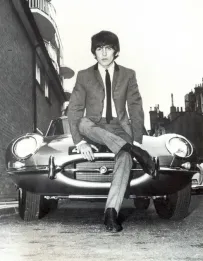 The story goes that Brian Epstein, the manager of The Beatles and frequently referred to as the fifth Beatle, gave George a Jaguar E-Type Jaguar for his 21st birthday. The car was customised, including a dashboard-mounted record player - can we have one?