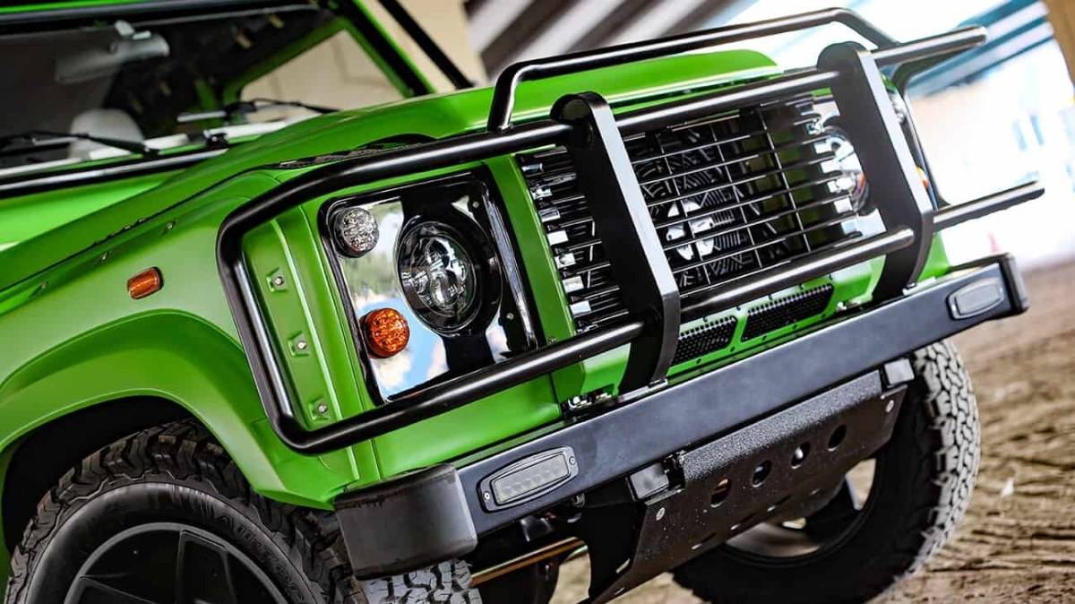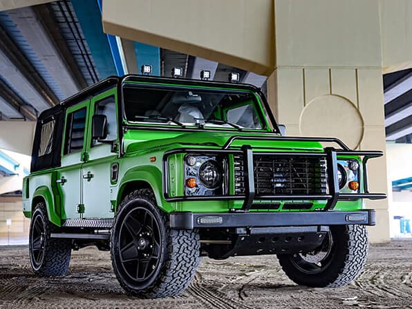 Over the years, ECD has also seen its share of builds in a range of different colors, from traditional Land Rover colors to custom swatches from a client’s personal collectible; we’ve seen it all. Enter Project NAW, a soft-top Lamborghini Verdi Mantis Defender 110 with a removable black canvas top and an all-white interior. Looking like a vehicle off of a film set, Project NAW is probably one of ECD’s most popular head turners as its paint process gained thousands of fans across our social channels and in the media alike. The brightly colored lime green Defender is extremely unique and a great reflection of the custom work ECD produces.