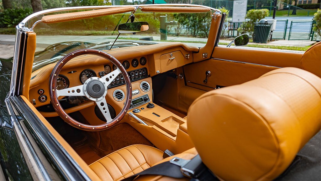 This 1973 Jaguar E-Type, built by E.C.D. Automotive design, was fully restored and features electric power via a Ampere EV Atom Drive 42kWh system. The build boasts a Cascadia Motion