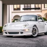 Finished in a sleek Icy White gloss exterior with Agate Gray metallic accents, Project Gravette projects a staid, commanding presence outfitted with custom decals, a strong wide-body stance, and a bespoke rear wing. Sitting on 18-inch RS-style wheels wrapped in Michelin performance tires and paired with Brembo brakes and Bilstein sport suspension, the 993 custom is engineered for a high-powered drive that remains refined. Modern LED headlights and taillights enhance visibility while subtly updating the classic silhouette with contemporary precision.