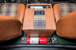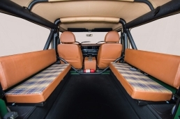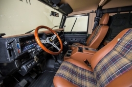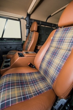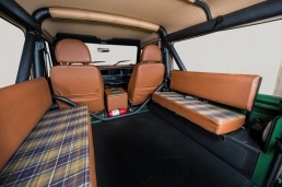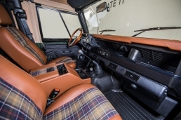 Project Barbour is a Heritage Edition Defender 90 that combines E.C.D.’s hand-crafted workmanship with the timeless, rugged style that is synonymous with the Barbour name. Powered by a rebuilt Rover V8 engine and a 5-speed manual transmission Project Barbour is fashioned with Barbour styling and branding throughout. The front seats and rear benches feature Saddle Leather with Barbour Tartan inserts, paired with Barbour Tartan door pockets with Barbour zip closures. Other interior features include a MOMO Indy steering wheel, Kenwood stereo with Infinity speakers and LED lighting throughout.