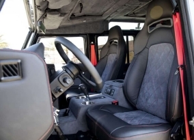 Project Blanco is a one-of-a-kind ECD Defender 110 built for drivers who want power, style, and off-road capability. It’s powered by a 6.2L LS3 engine that delivers 565 horsepower. Combined with ECD’s custom air suspension, it offers a smooth, responsive ride on any terrain. The exterior shines in Causeway Grey full gloss, while 20-inch Kahn Mondail Retro wheels with BF Goodrich tires give it a bold, rugged stance. A full roll cage with roof rack and a Warn Industries winch make it ready for adventure.