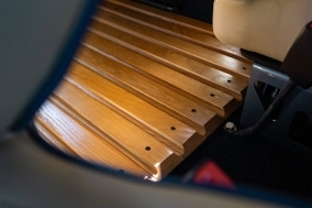 Interior — Chatham Beige leather with Chatham Navy middle inserts with Single Vertical Diamond on Middle Inserts, Capitano "Old Navy" Piping around Edges