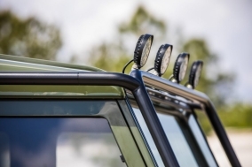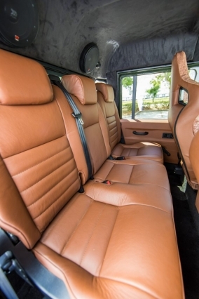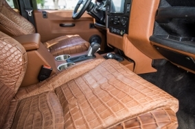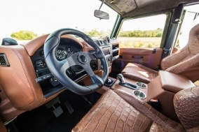 The Huntress is a unique Defender 130 which features a Chevrolet LS3, 6.2 liter, 430-horsepower V8 engine. Her interior offers Corbeau front seats in chocolate brown alligator skin with brown leather accents, Kenwood touchscreen infotainment with GPS, a backup camera, WiFi, and Apple Car Play. Sporting a Boost 18" wheels with BFGoodrich tires and a tubular winch bumper with a WARN winch.