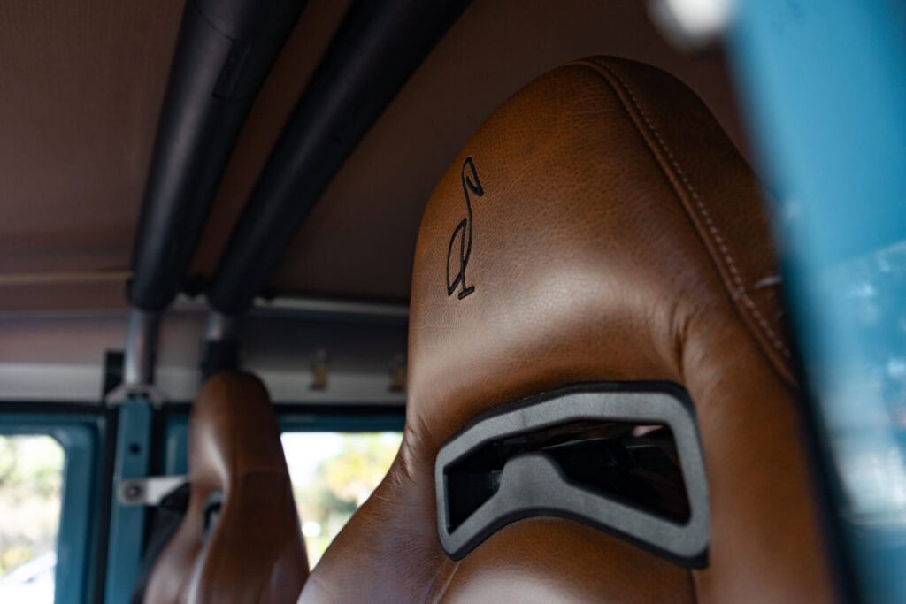 Interior — Bellissimo Anis leather, Monogram Pelican Logo Embroidered on Seat