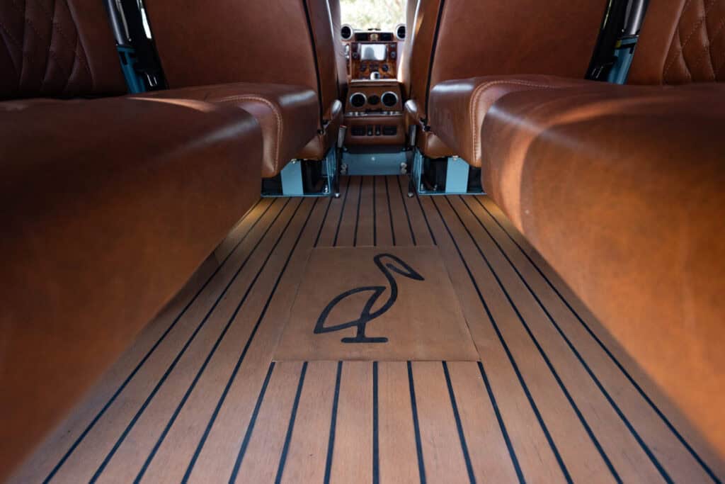Headrests, and Custom PlasDECK Flooring in Aged Teak with Black Lines and add Pelican Logo centered in cargo area