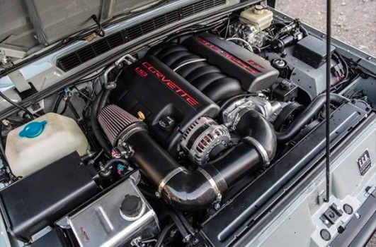 The standard configuration is the Chevrolet 6.2L LS3 V8 engine with approximately 430 horsepower, providing modern performance while maintaining the vehicle’s classic appeal.