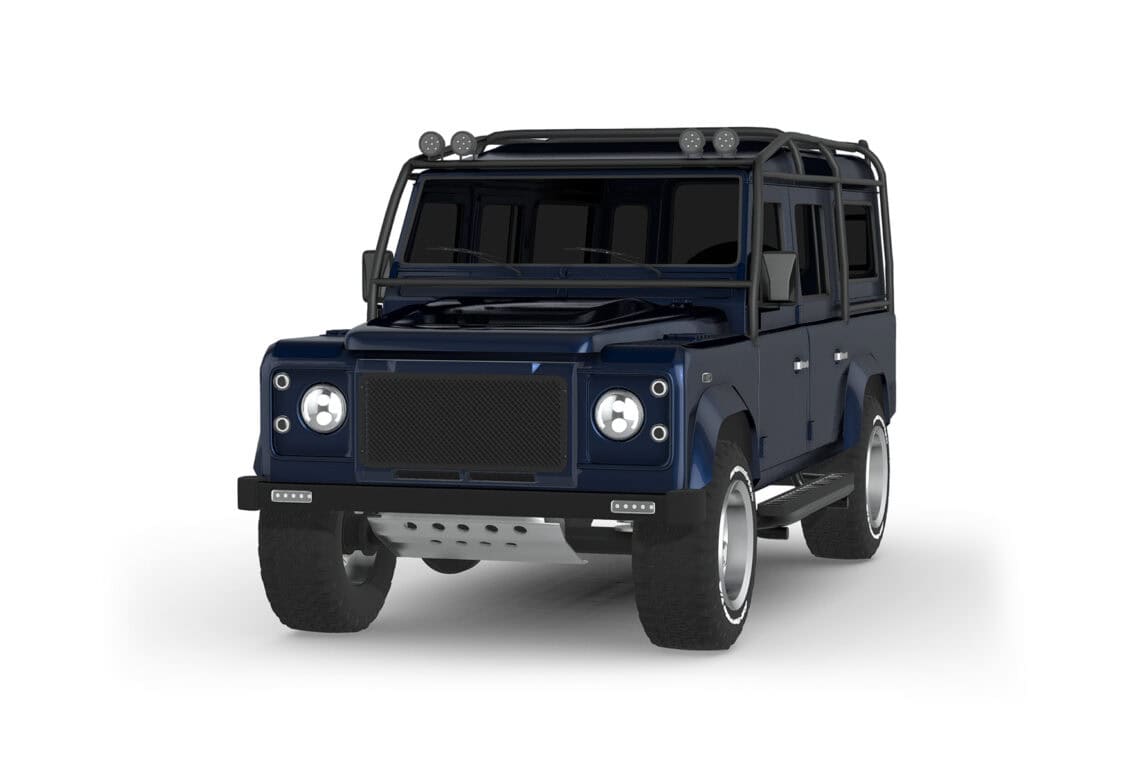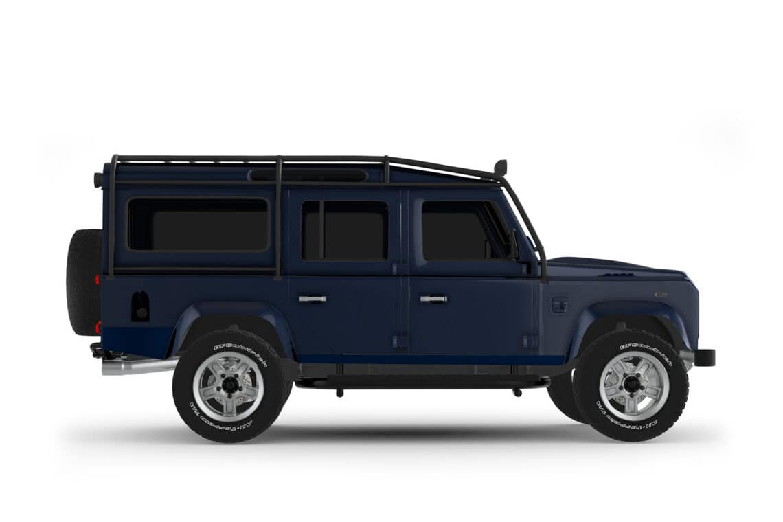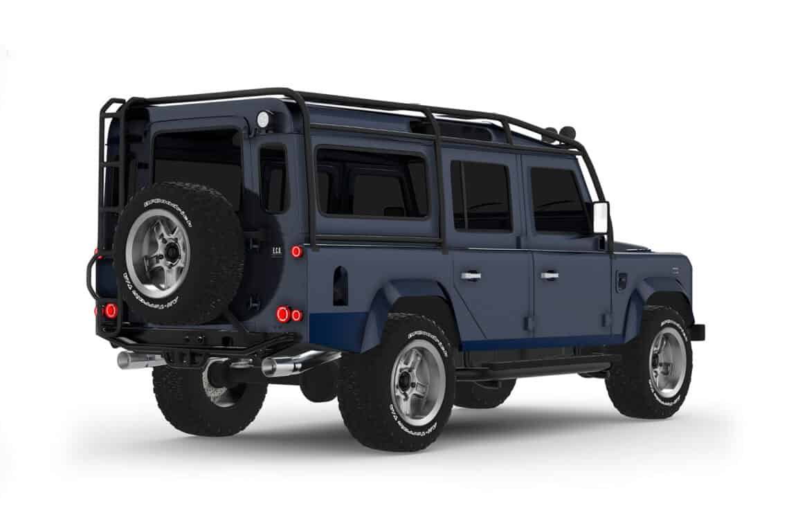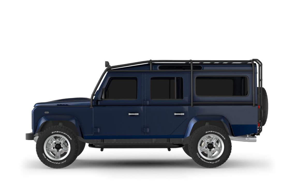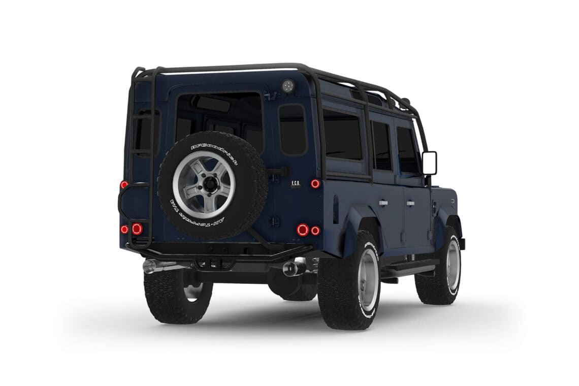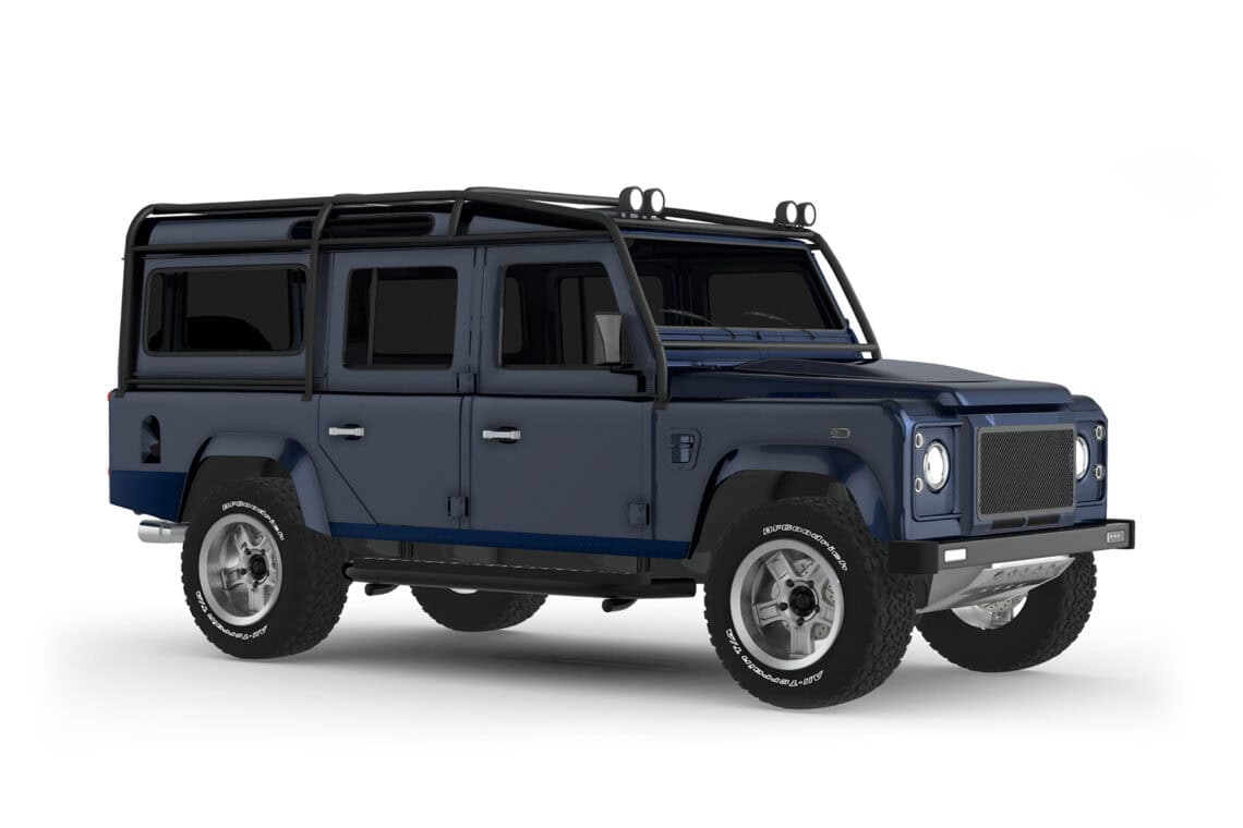 This ECD custom Defender 110 is one of our beautiful creations, part of our County Collection! Meet Project Shropshire! Designed with a robust 6.2L LT1 V8 paired with a matching automatic transmission, to deliver a refined driving experience perfect for weekend adventures or everyday driving alike. Envisioned in a stunning Dark Blue Metallic paint in full gloss finish, sitting on 18″ Sawtooth alloy wheels wrapped in BFGoodrich All-Terrain tires, and accentuated by a 6-point roll cage, this is a truck like no other that’s guaranteed to turn heads wherever it goes. Will come outfitted with premium features like LED lighting, a custom leather interior with heated Corbeau Trailcat seating, and a modern infotainment system with Apple CarPlay and JL Audio sound, Project Shropshire seamlessly blends classic Defender styling with modern luxury and performance. Available for delivery July 26.