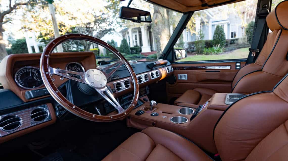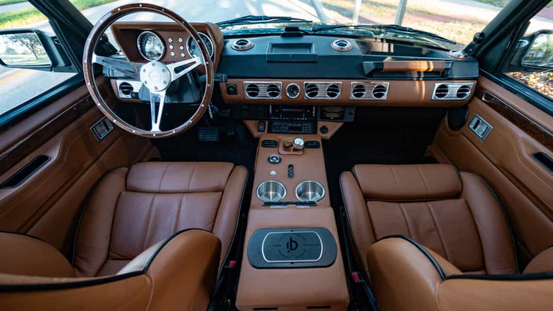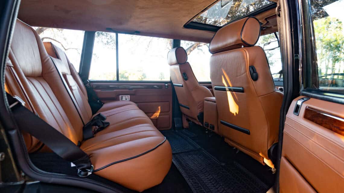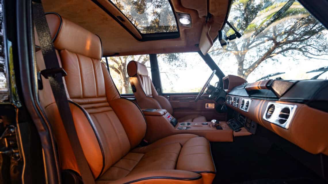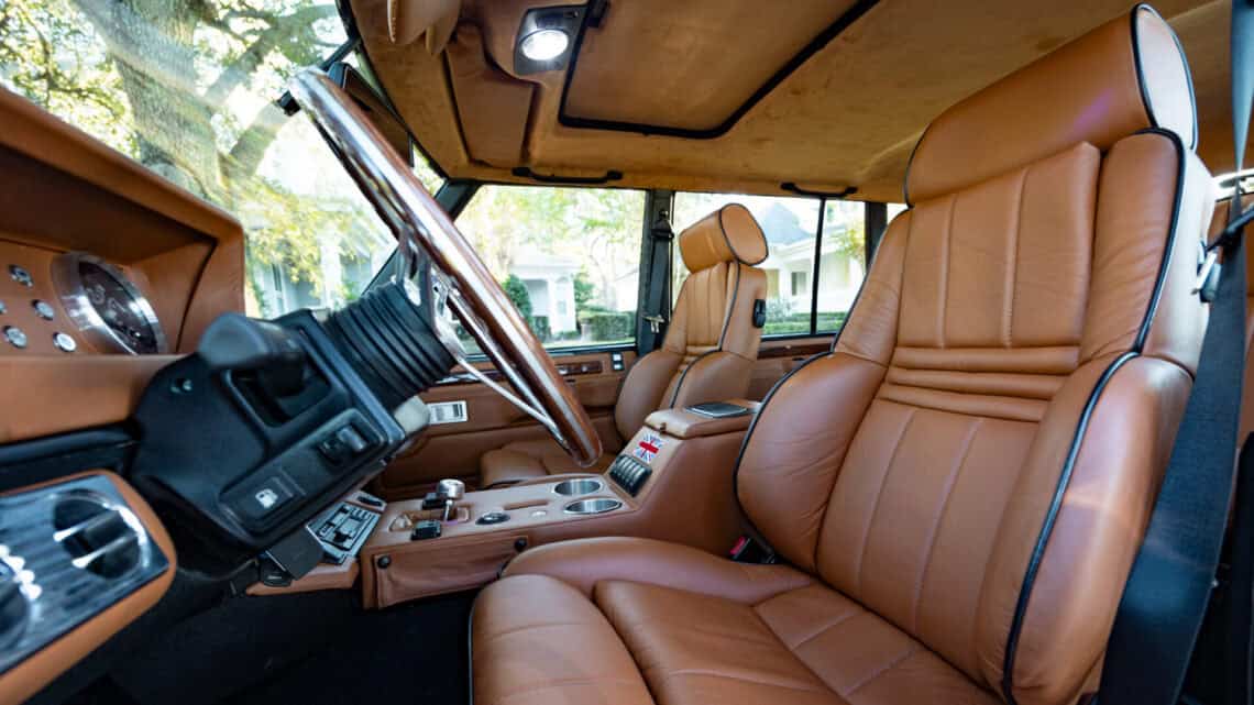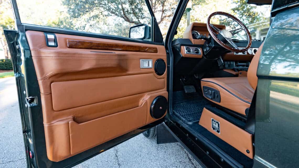 Introducing Project Dog Rescue: an exceptional ECD Custom Range Rover Classic LWB crafted to command attention. Finished in full gloss Land Rover Ardennes Green, this build is powered by a 6.2L LT1 V8 paired seamlessly with an 8 speed automatic transmission, delivering refined performance and effortless drivability. Performance enhancements include Brembo brakes, our ECD custom air ride suspension, a Borla stainless steel exhaust system, while 20″ Kahn Retro Mondial wheels wrapped in Pirelli P-Zero performance tires complete its stance. Inside, the cabin blends classic design with modern comfort, featuring Recaro Orthoped front seats and an OEM style 3 passenger middle-row bench. Thoughtfully integrated modern amenities include reverse cameras, USB and Bluetooth connectivity, USB charging ports, an Infinity Kappa audio system, TPMS sensors, and more. Project Dog Rescue represents a seamless fusion of heritage styling and contemporary engineering contact us for further details on this one of a kind build.
