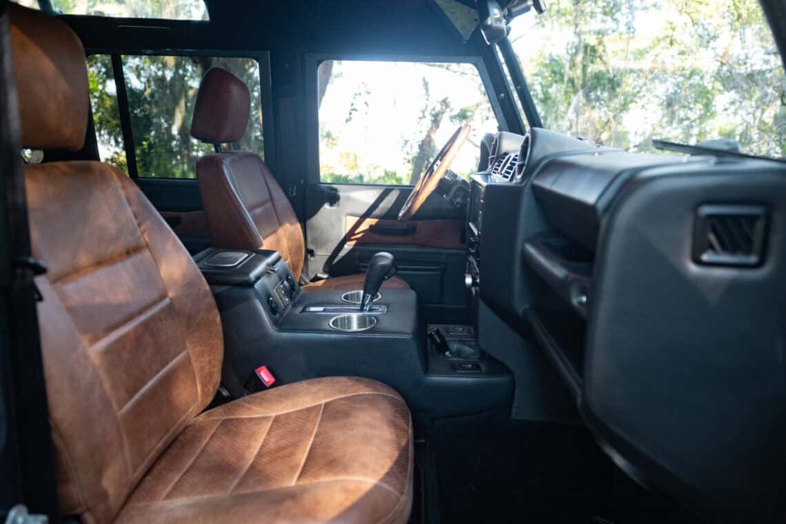 This ECD Custom Defender 110 is codenamed Project El Padre. Powered by a robust LS3 V8 engine paired with a smooth automatic transmission, it delivers a perfect balance of power and refinement. Finished in a stunning Land Rover Byron Blue with a full gloss finish, it stands proudly on 18-inch Sawtooth wheels wrapped in BFG All Terrain all black tires, ready for any adventure. For superior handling and ride quality, Project El Padre features ECD Air Ride suspension and Fast Performance brakes, ensuring confidence and control in every drive. Inside, a Puma Classic dash wrapped in rich brown leather sets the tone for timeless sophistication, complemented by a powder coated steering wheel and a set of ECD electric gauges for a modern touch. Entertainment and connectivity come courtesy of an ECD custom stereo system, completing the cabin’s premium experience. El Padre is the ultimate blend of craftsmanship, comfort, and capability, built to turn every journey into an occasion.