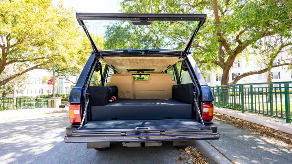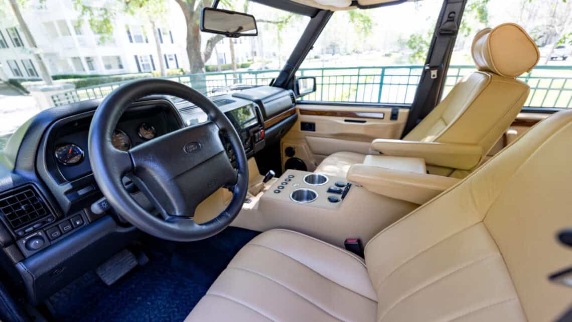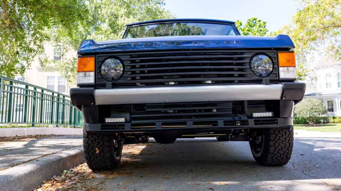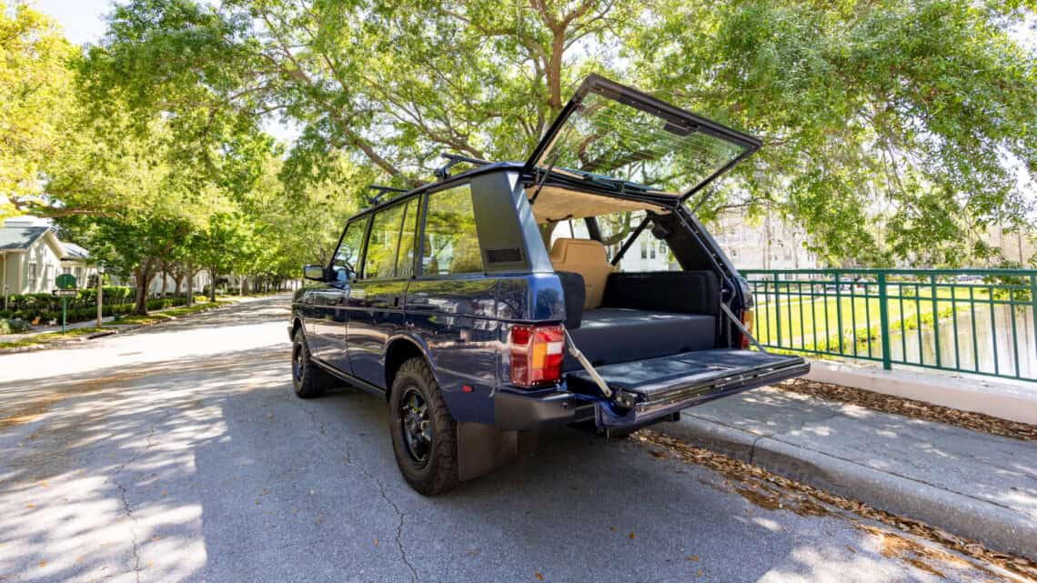 This unique ECD Custom EV Range Rover Classic build is codenamed Project Causeway Cruiser! Painted in a beautiful Stratus Blue with a full gloss finish. It is powered by our 1st gen EV based on the Tesla powertrain. This RRC rides on 16 Inch OEM style wheels with the centers painted in black wrapped in BFG All Terrain tires, complemented by EBC brakes and our ECD custom air ride suspension. Inside, you’ll find an ALPINE HALO touch screen head unit, our custom Electric gauges, and an OEM LR steering wheel with airbags, wrapped in black leather. The front seats and 60/40 split bench seats are luxuriously upholstered in Avion Sesame leather and the dash in Avion Coal. This vehicle comes with many modern features such as Android Auto / Apple CarPlay, reverse camera with proximity sensors, TPMS sensors, front and rear power windows, USB ports throughout and much more.