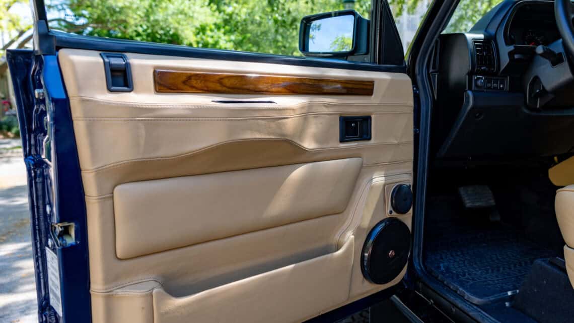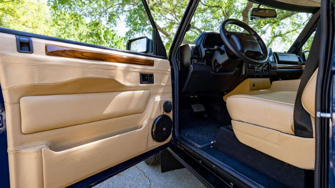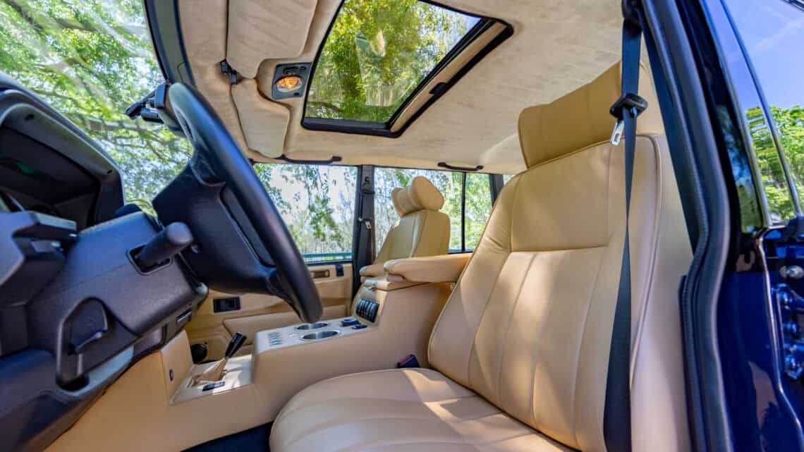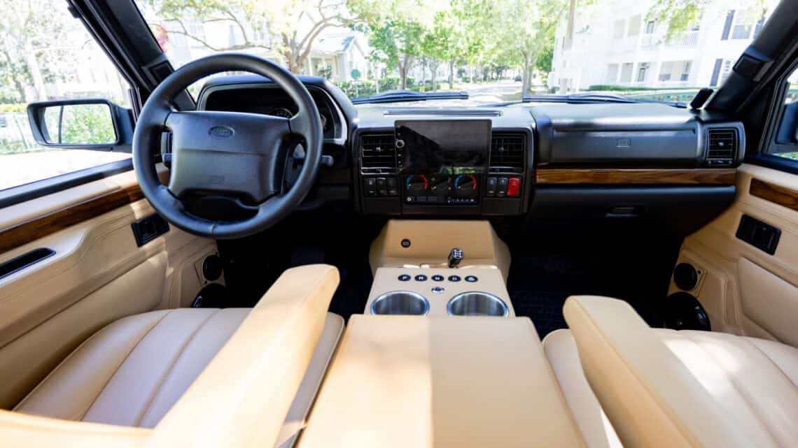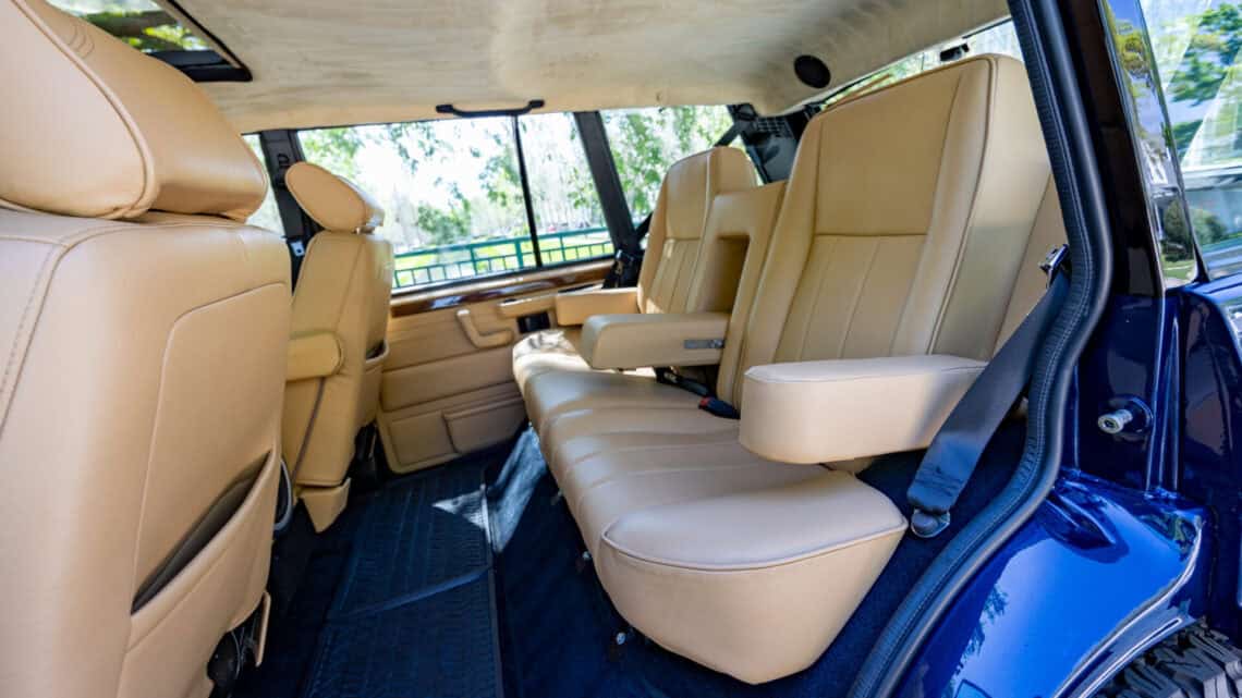 This unique ECD Custom EV Range Rover Classic build is codenamed Project Causeway Cruiser! Painted in a beautiful Stratus Blue with a full gloss finish. It is powered by our 1st gen EV based on the Tesla powertrain. This RRC rides on 16 Inch OEM style wheels with the centers painted in black wrapped in BFG All Terrain tires, complemented by EBC brakes and our ECD custom air ride suspension. Inside, you’ll find an ALPINE HALO touch screen head unit, our custom Electric gauges, and an OEM LR steering wheel with airbags, wrapped in black leather. The front seats and 60/40 split bench seats are luxuriously upholstered in Avion Sesame leather and the dash in Avion Coal. This vehicle comes with many modern features such as Android Auto / Apple CarPlay, reverse camera with proximity sensors, TPMS sensors, front and rear power windows, USB ports throughout and much more.