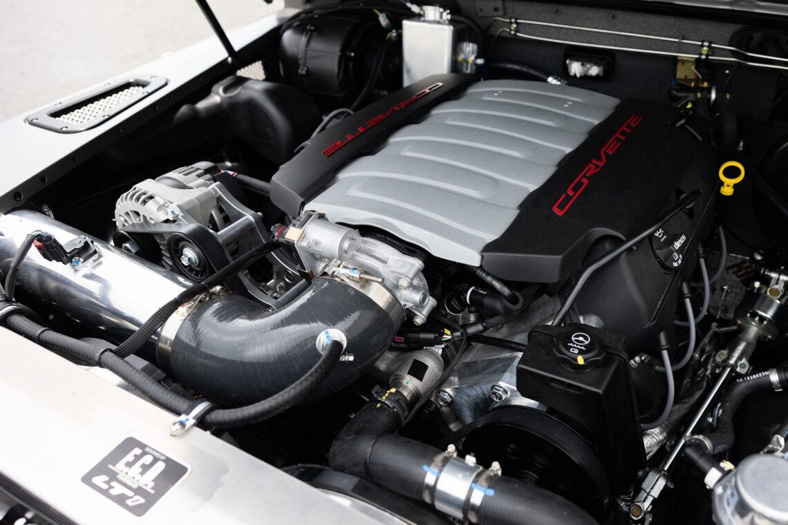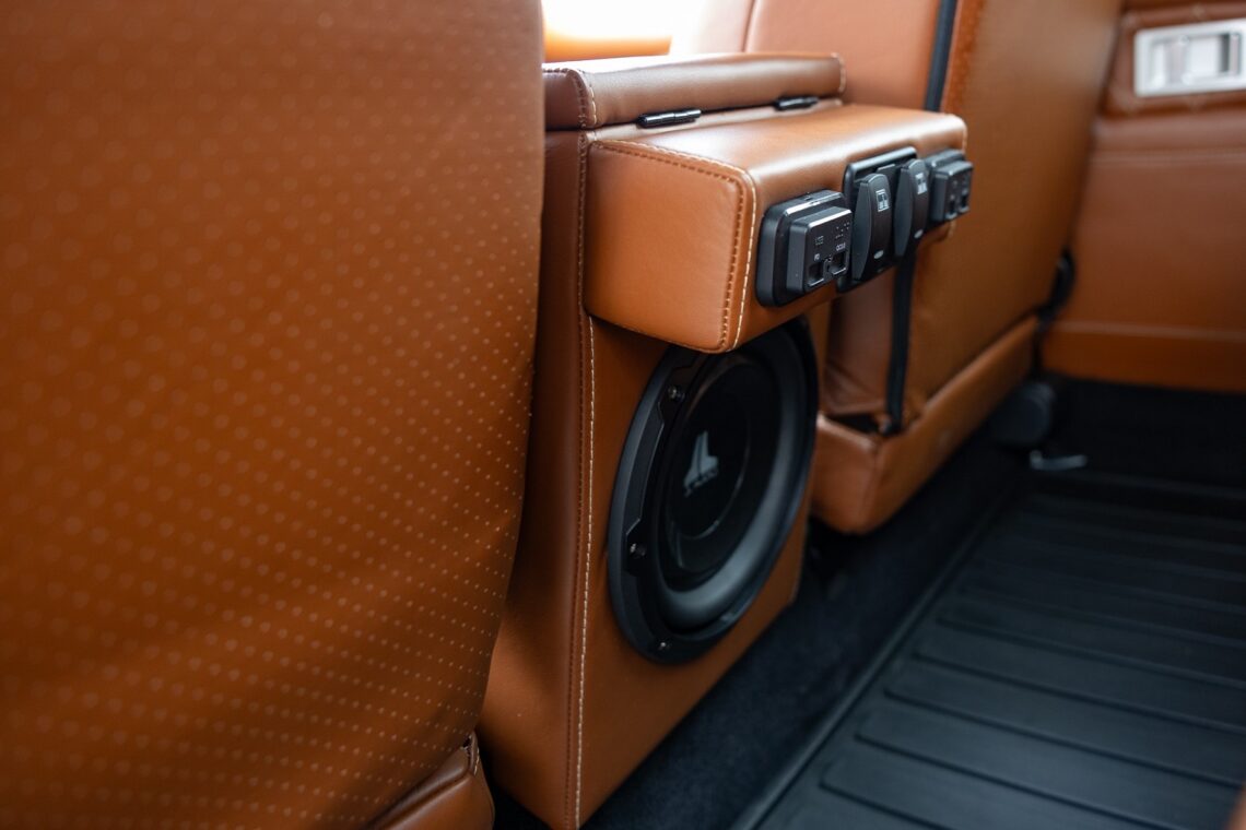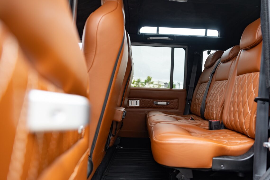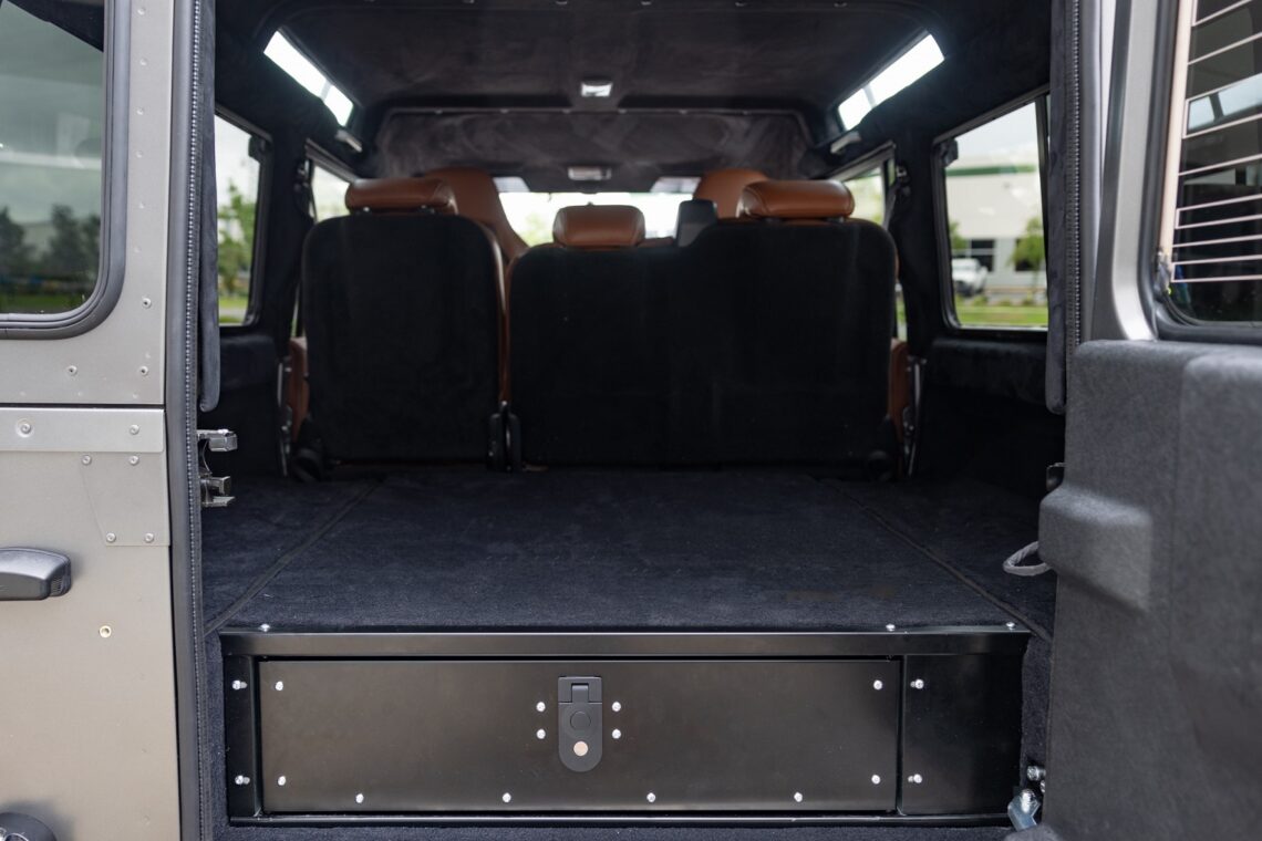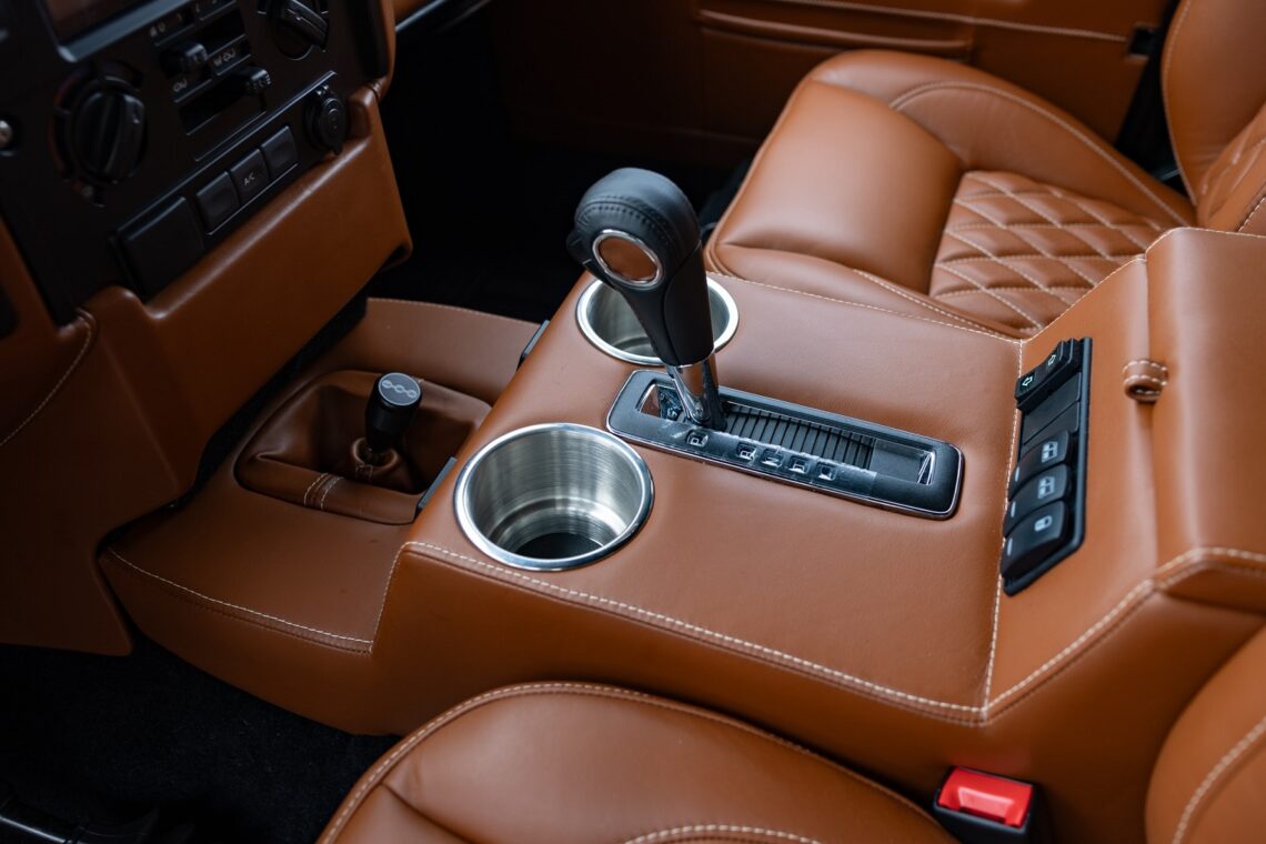 This custom ECD Defender 110 build is known as Project Cyclone! It is finished in Gunmetal Gray in Eggshell finish, powered by an LT1 V8 and is paired to an 10 speed Automatic transmission. This Defender is enhanced by a 6-point roll cage , 20 Inch Kahn Mondial Retro painted in Satin Black and wrapped in BFG all-terrain tires and has the EBC fast brakes. Project Cyclone also include our custom ECD air ride suspension system. The interior features the Puma dash wrapped in Amalfi Black and Tan leather. Also inside you will find the Corbeau Trailcat seats wrapped in Brown leather. This truck also has plenty of modern features such as a touch screen head unit, Apple CarPlay, rear a/c, wireless charging, USB ports throughout and much more. Don’t miss your chance to drive away in this restored defender and experience a customized adventure.