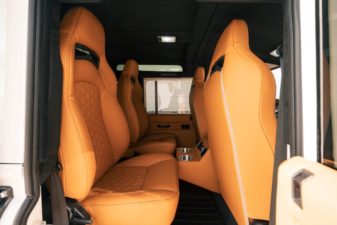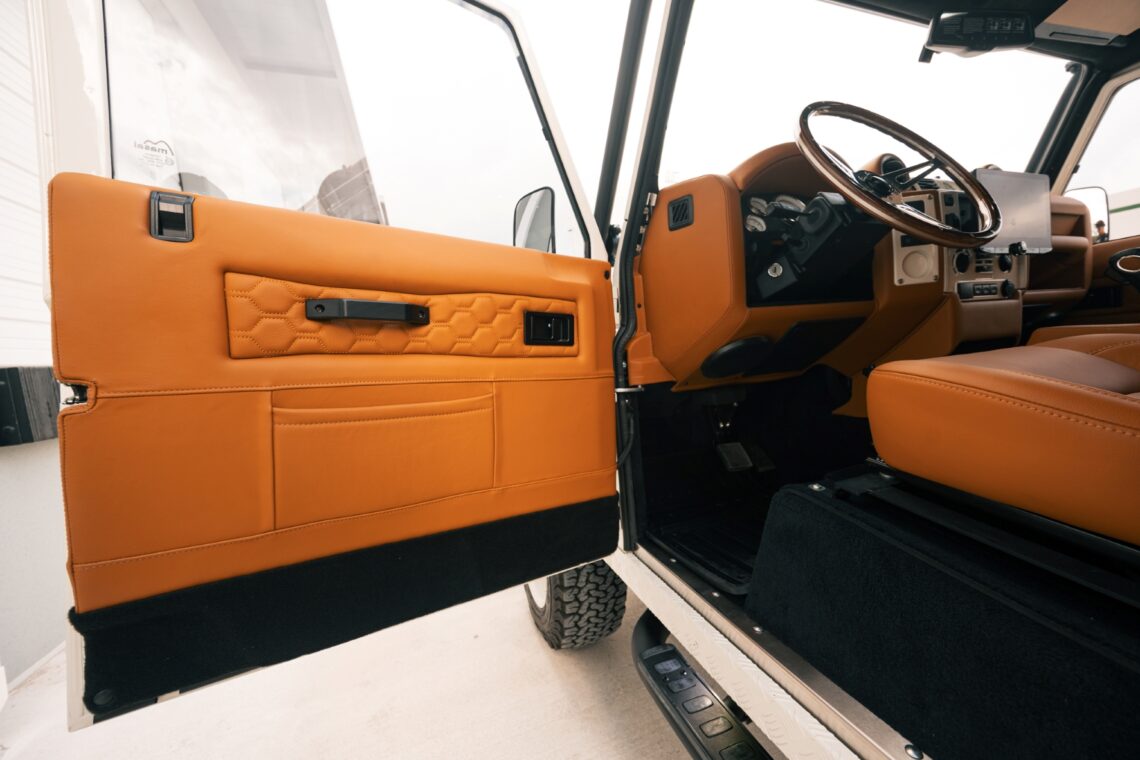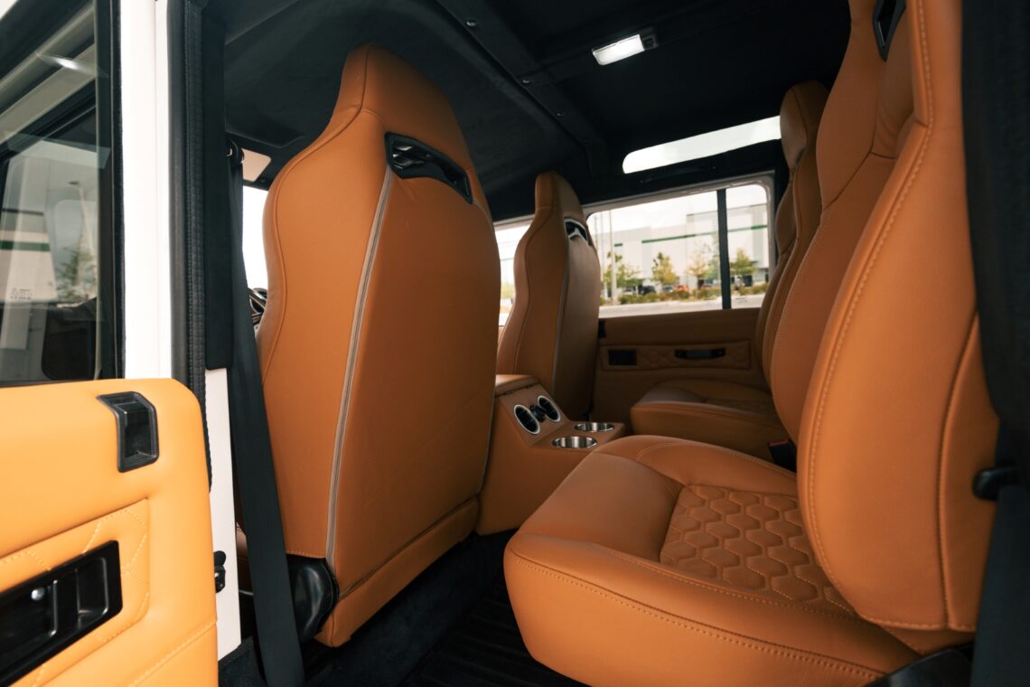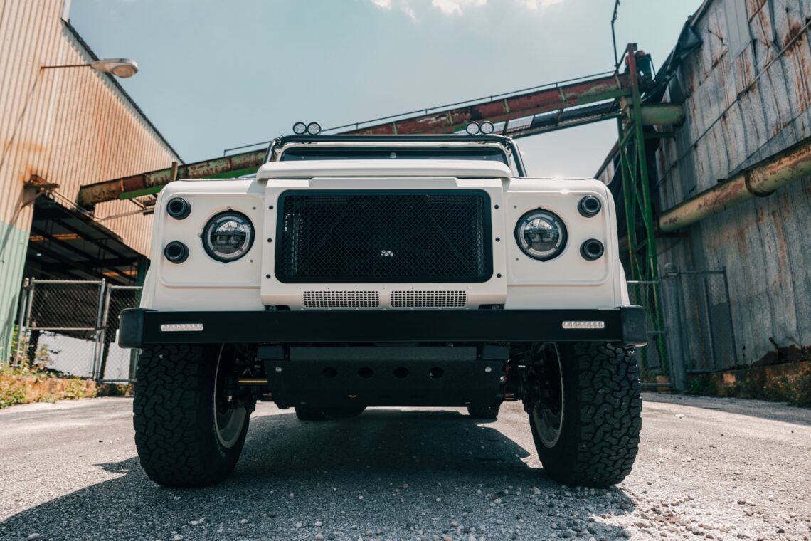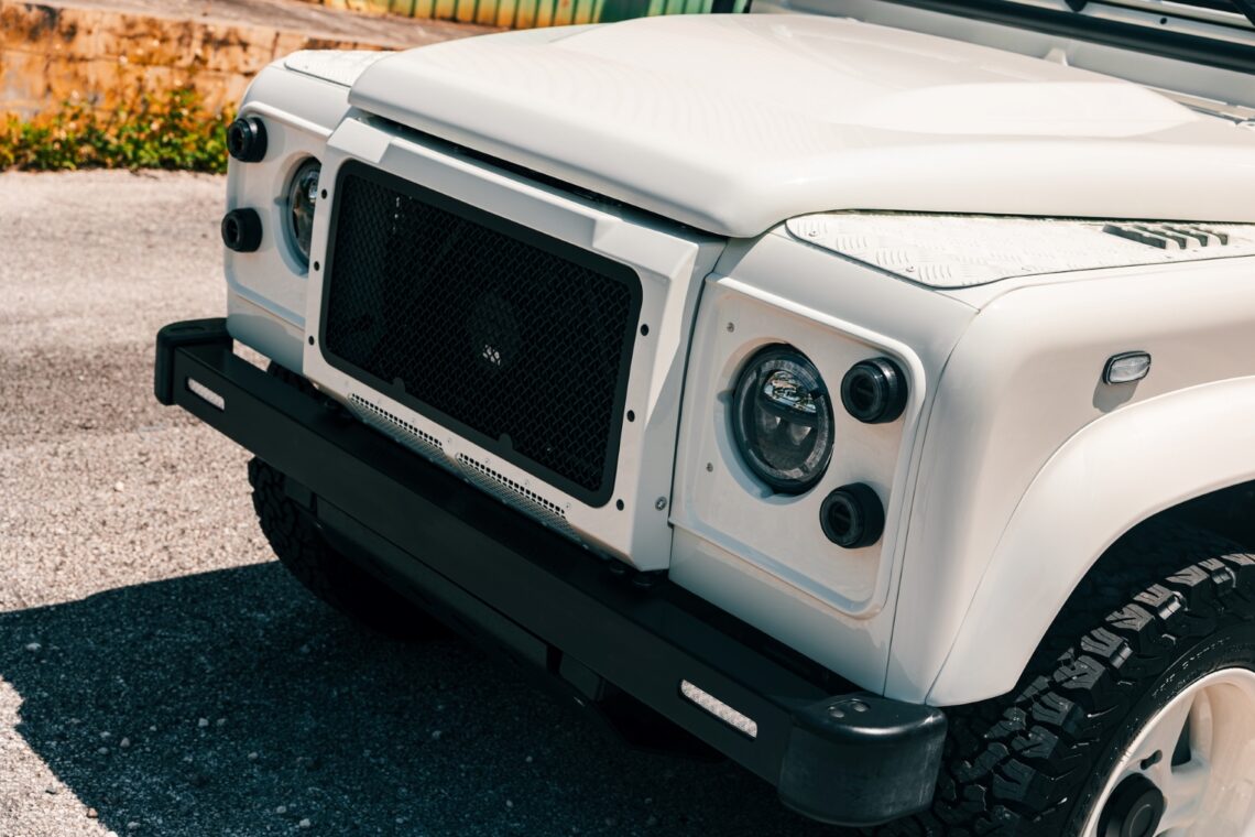This ECD custom Defender 110 is one of our beautiful creations part of our County Collection! Meet Project Cambridgeshire! Built with a robust 6.2L GM LT1 V8 paired with a 10-speed automatic transmission, it offers a smooth yet powerful driving experience, just what you need for the weekend adventures or your everyday use. Painted in this gorgeous Chawton White paint in full gloss finish, sitting on 18″ Ceradoc wheels, accentuated by a 6 point full external roll cage. This is a truck like no other, that is bound to get some heads turning!