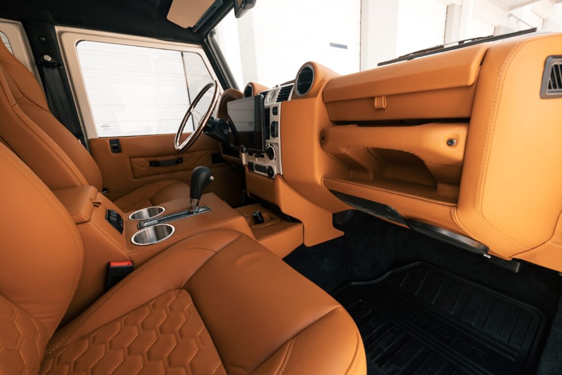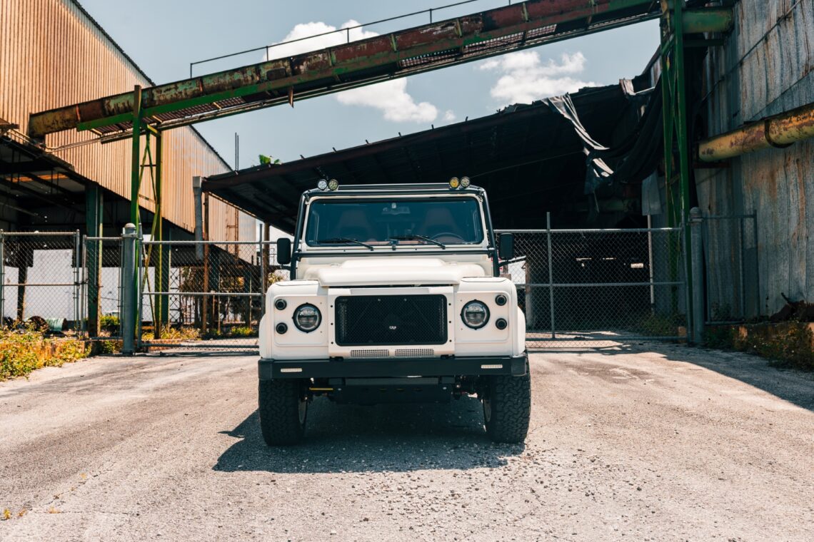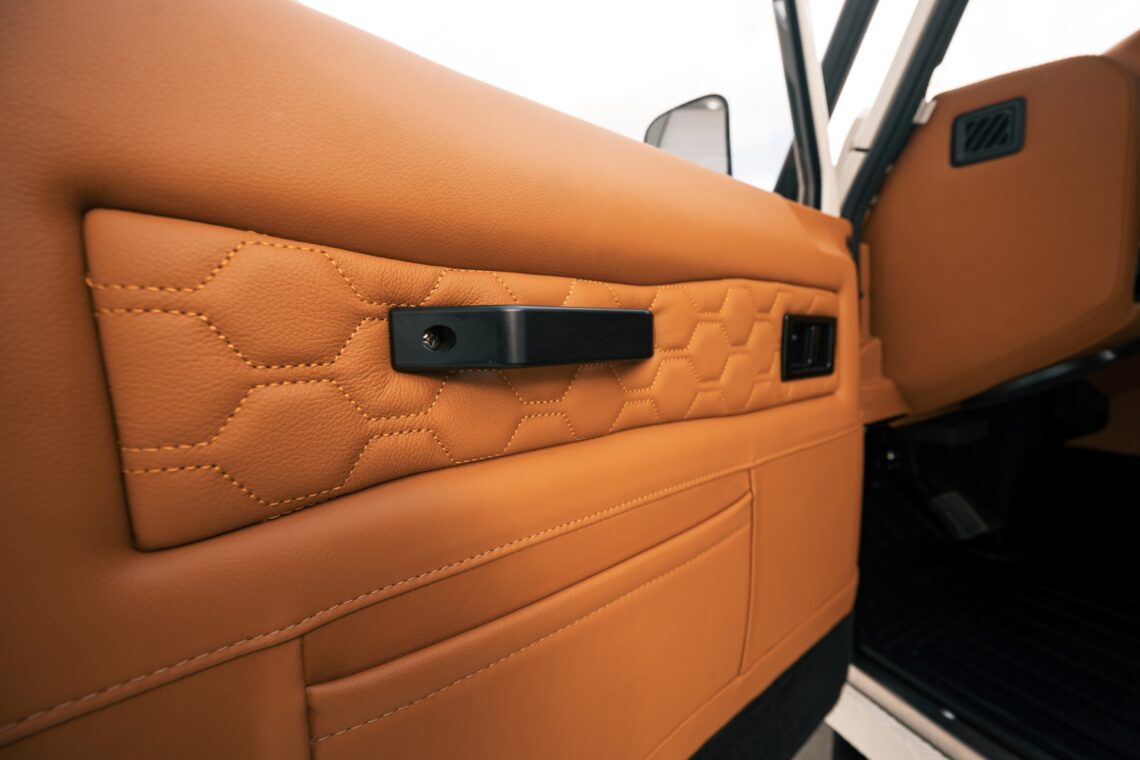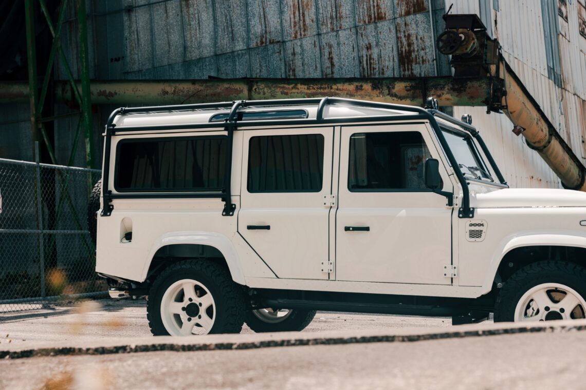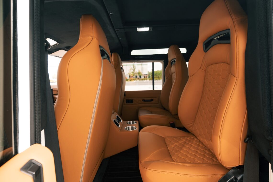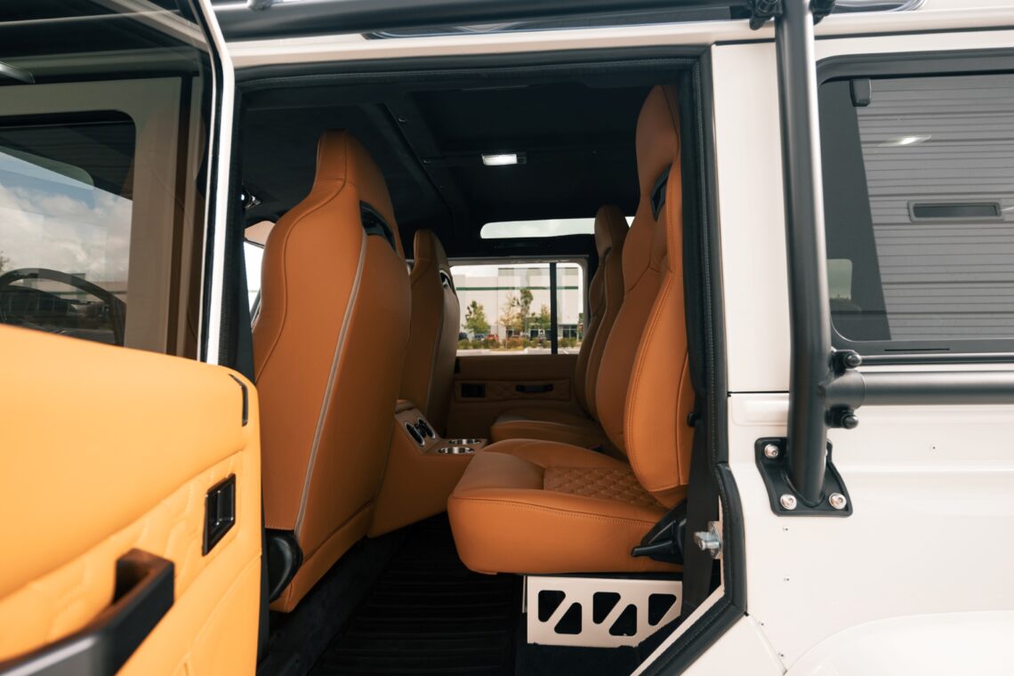 This ECD custom Defender 110 is one of our beautiful creations part of our County Collection! Meet Project Cambridgeshire! Built with a robust 6.2L GM LT1 V8 paired with a 10-speed automatic transmission, it offers a smooth yet powerful driving experience, just what you need for the weekend adventures or your everyday use. Painted in this gorgeous Chawton White paint in full gloss finish, sitting on 18″ Ceradoc wheels, accentuated by a 6 point full external roll cage. This is a truck like no other, that is bound to get some heads turning!