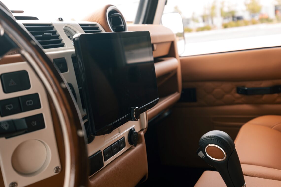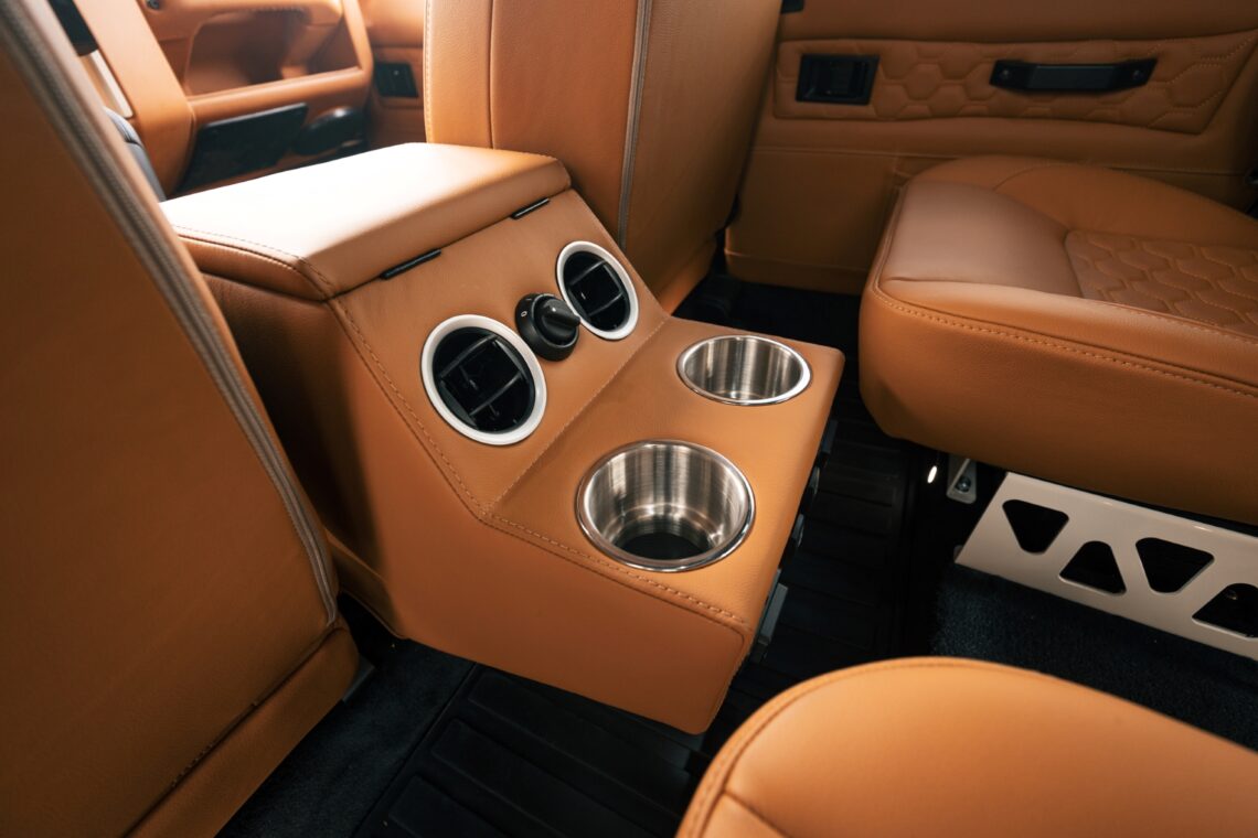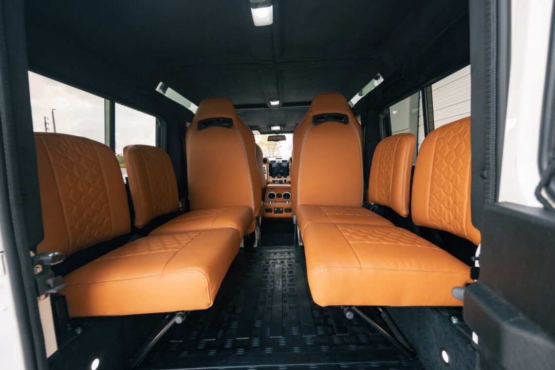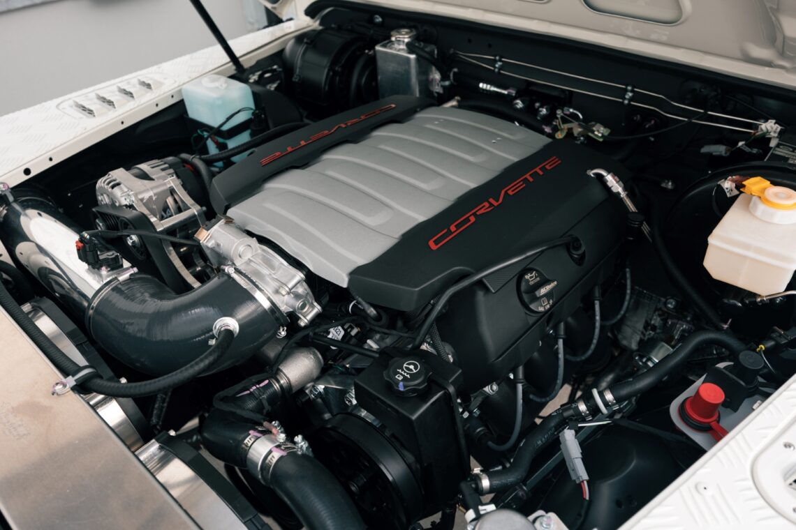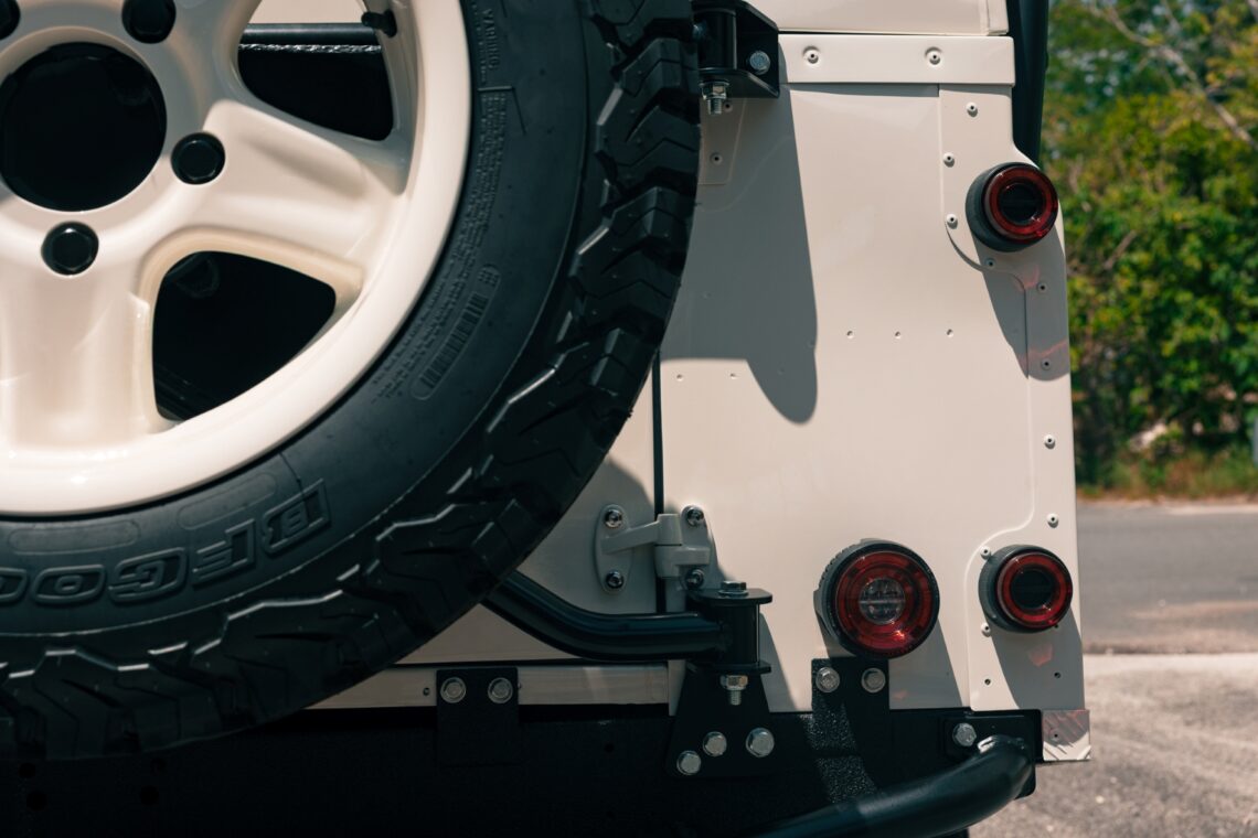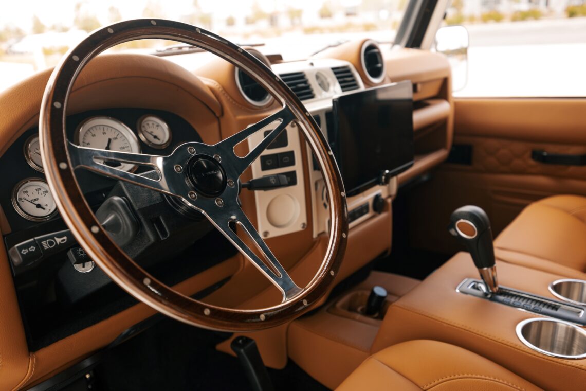 This ECD custom Defender 110 is one of our beautiful creations part of our County Collection! Meet Project Cambridgeshire! Built with a robust 6.2L GM LT1 V8 paired with a 10-speed automatic transmission, it offers a smooth yet powerful driving experience, just what you need for the weekend adventures or your everyday use. Painted in this gorgeous Chawton White paint in full gloss finish, sitting on 18″ Ceradoc wheels, accentuated by a 6 point full external roll cage. This is a truck like no other, that is bound to get some heads turning!