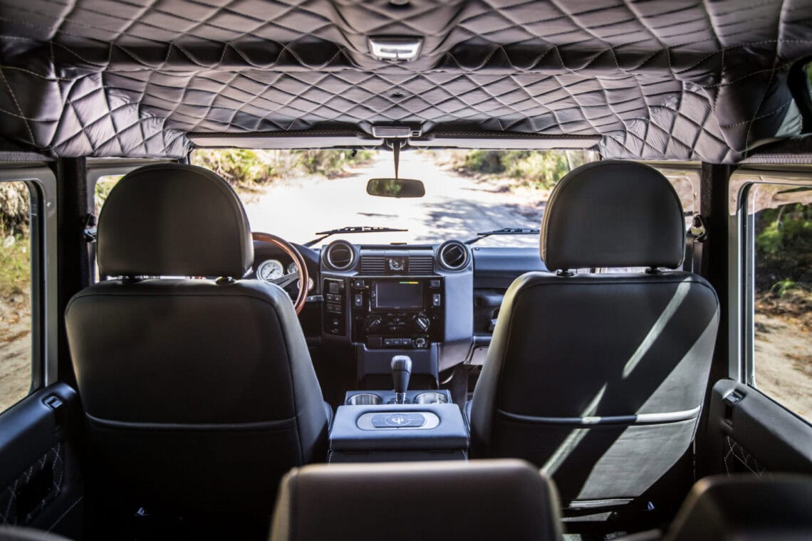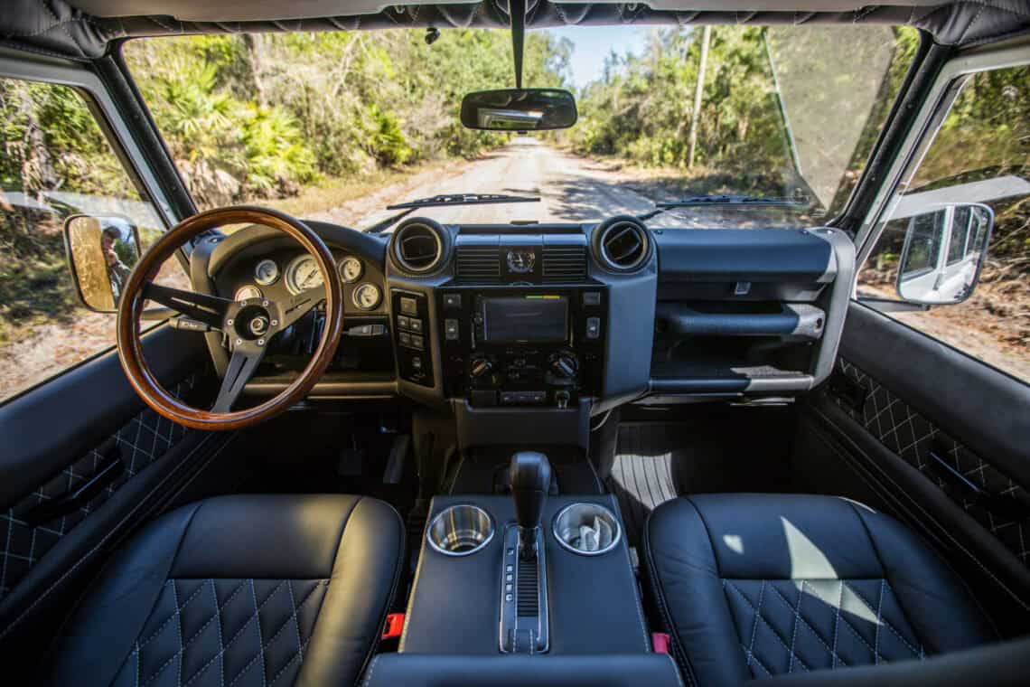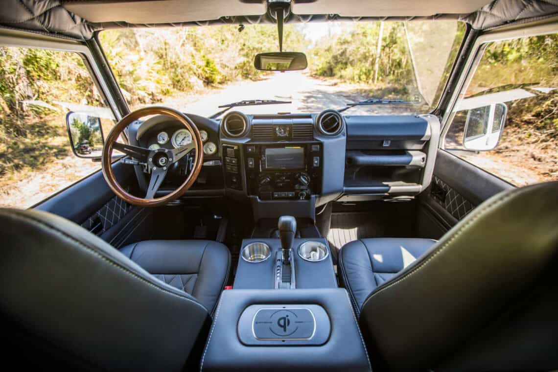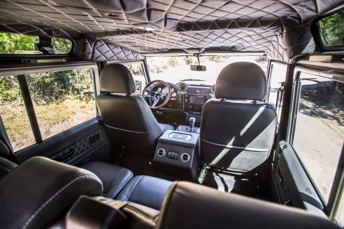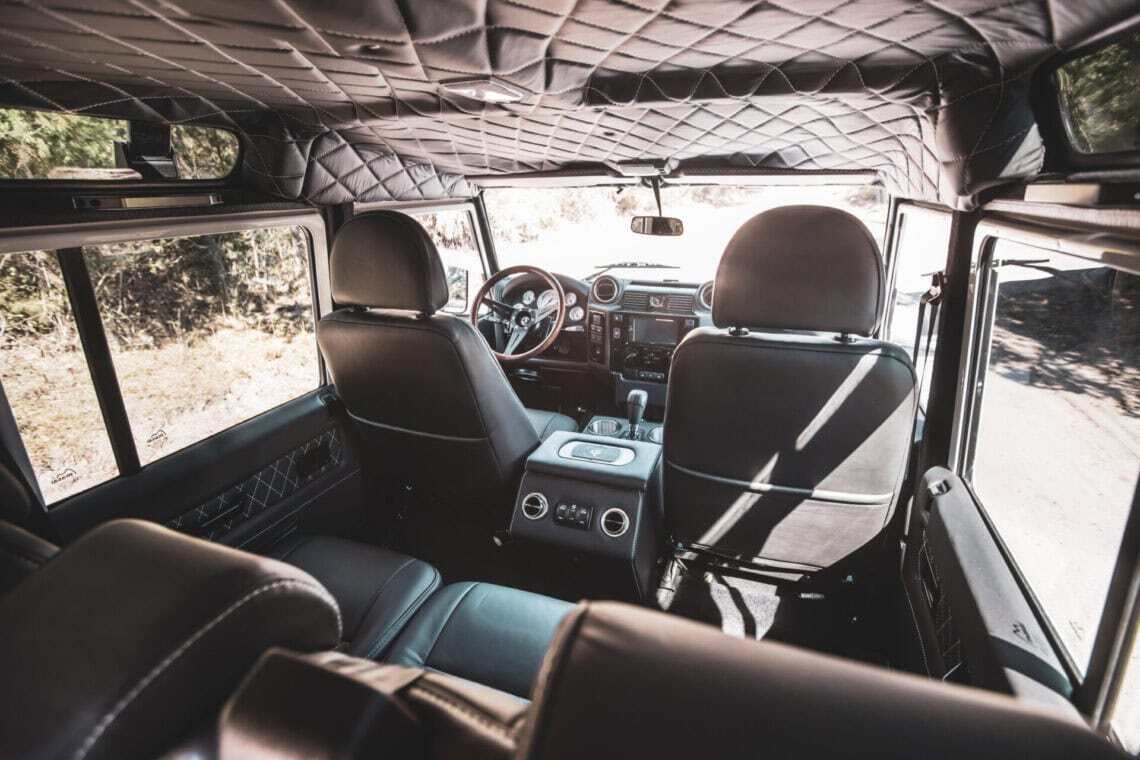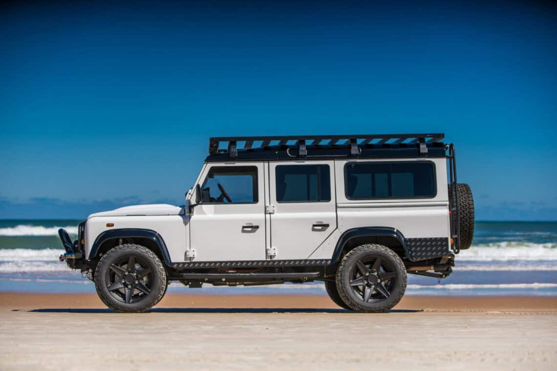 This custom ECD Defender 110 build is known as Project Alpaca! It is finished in Super White gloss and powered by a 6.2L LS3 V8 and it is paired to an automatic transmission. This Defender 110 has 20″ ECD ADV1 custom wheels wrapped in BFGoodrich All-Terrain tires, custom ECD Air suspension, Frontrunner roof rack and a Warn winch. The interior is highlighted by a pair of Puma classic seats in the front with a matching 60/40 bench in the mid row. All seats are wrapped in Nappa Schwarz leather accented by a white diamond stitch design. The interior is also accentuated by the leather wrapped puma dash, a Nardi steering wheel, wireless charging pad, MUD UK glovebox and headliner to match the seats. Other key features to give this truck a modern feel are a Sony infotainment system with Sirius XM, a full JL Audio high end sound system, white faced Classic Instrument gauges, Brembo brakes, and much more.