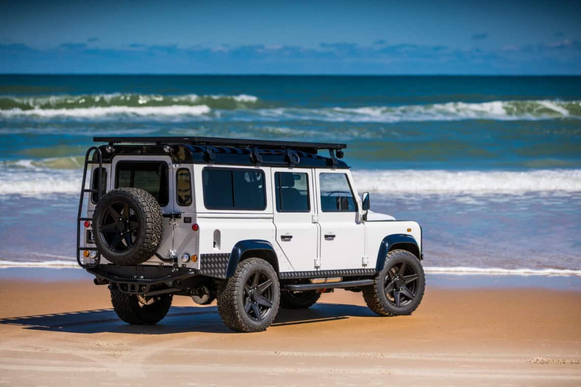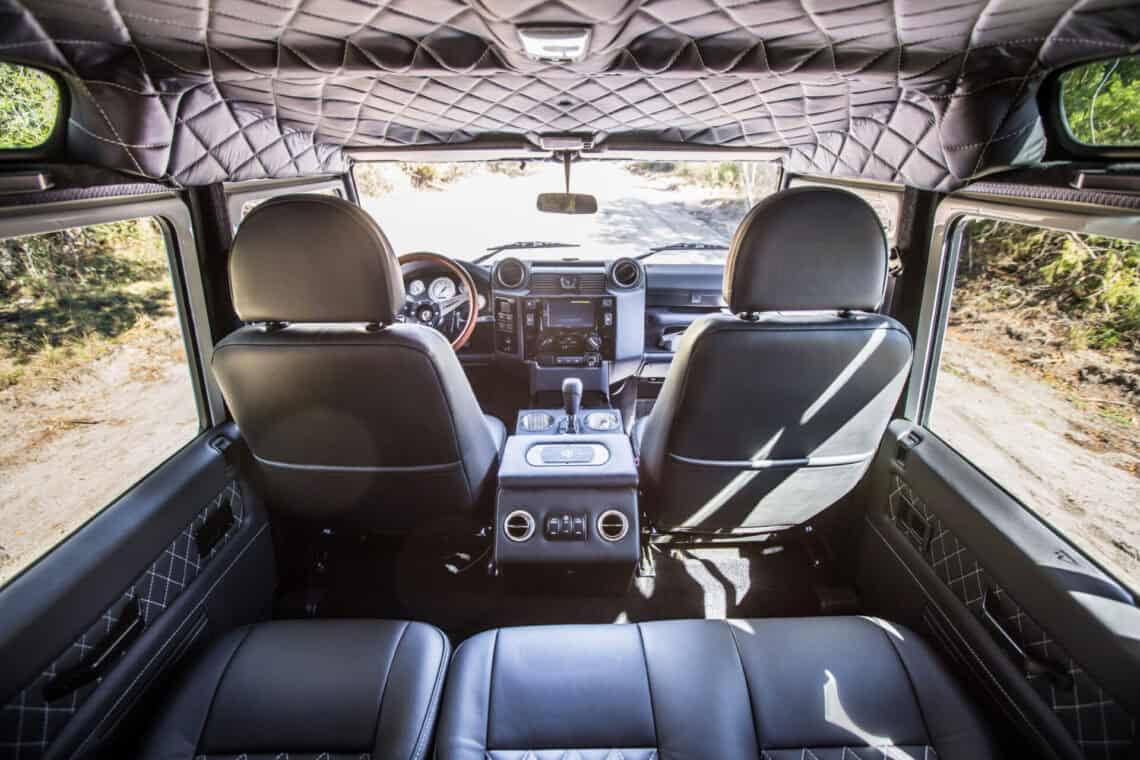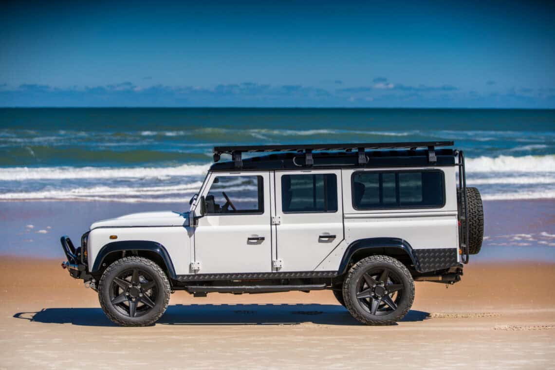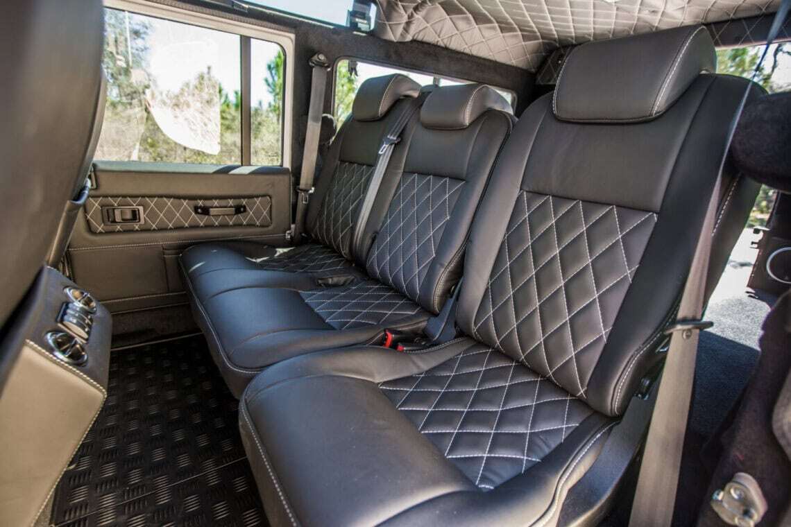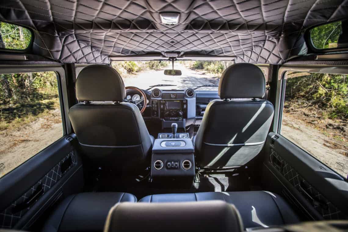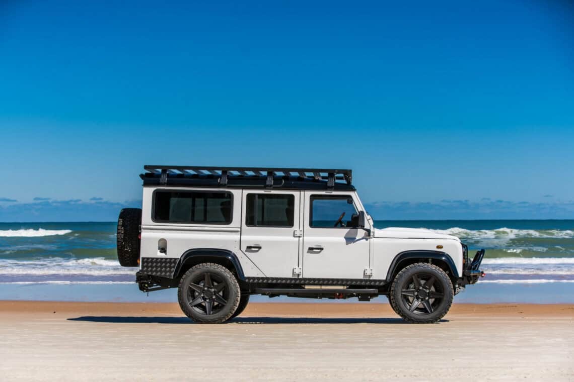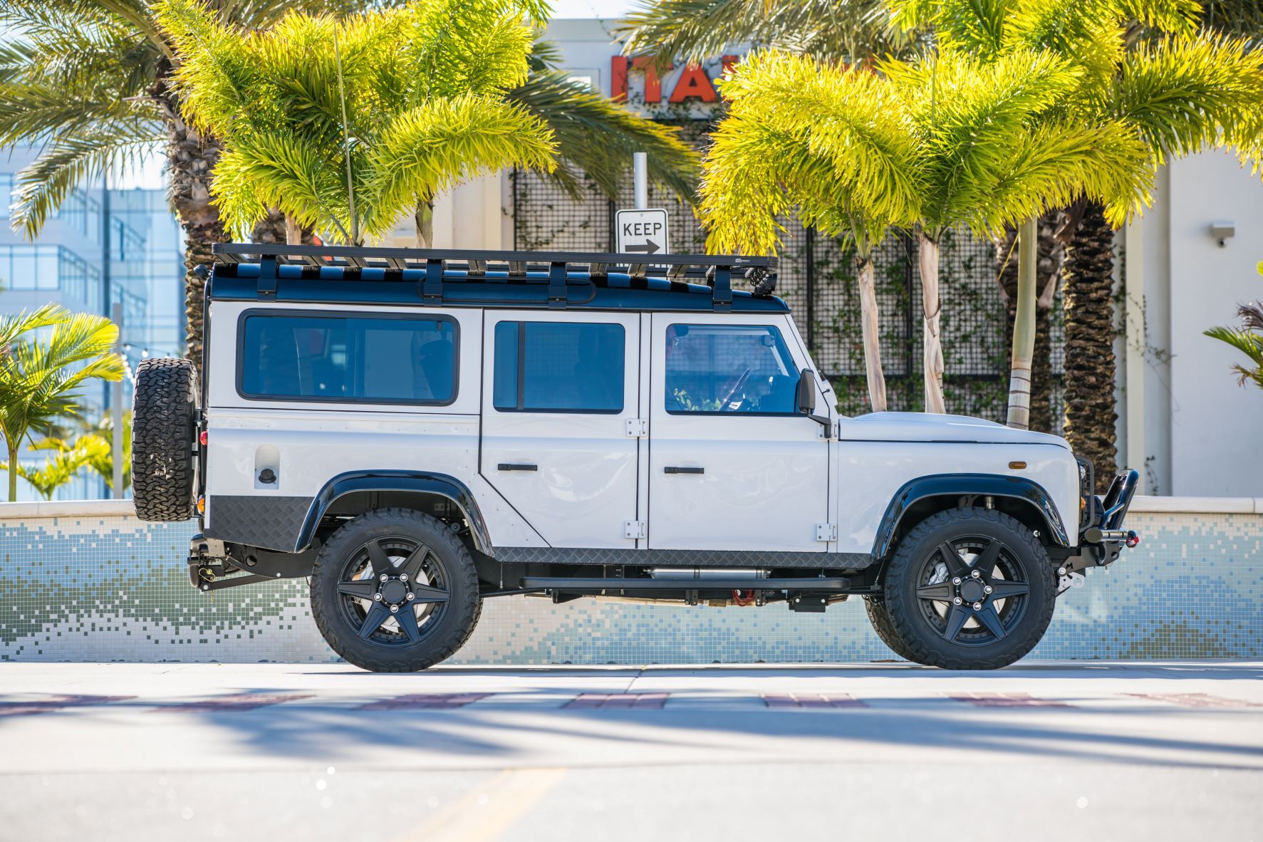 This custom ECD Defender 110 build is known as Project Alpaca! It is finished in Super White gloss and powered by a 6.2L LS3 V8 and it is paired to an automatic transmission. This Defender 110 has 20″ ECD ADV1 custom wheels wrapped in BFGoodrich All-Terrain tires, custom ECD Air suspension, Frontrunner roof rack and a Warn winch. The interior is highlighted by a pair of Puma classic seats in the front with a matching 60/40 bench in the mid row. All seats are wrapped in Nappa Schwarz leather accented by a white diamond stitch design. The interior is also accentuated by the leather wrapped puma dash, a Nardi steering wheel, wireless charging pad, MUD UK glovebox and headliner to match the seats. Other key features to give this truck a modern feel are a Sony infotainment system with Sirius XM, a full JL Audio high end sound system, white faced Classic Instrument gauges, Brembo brakes, and much more.