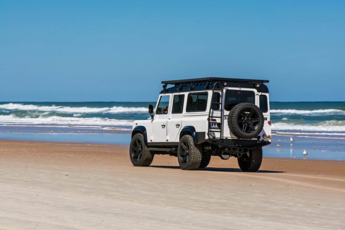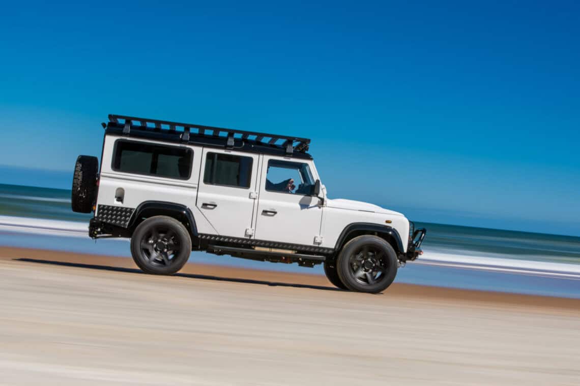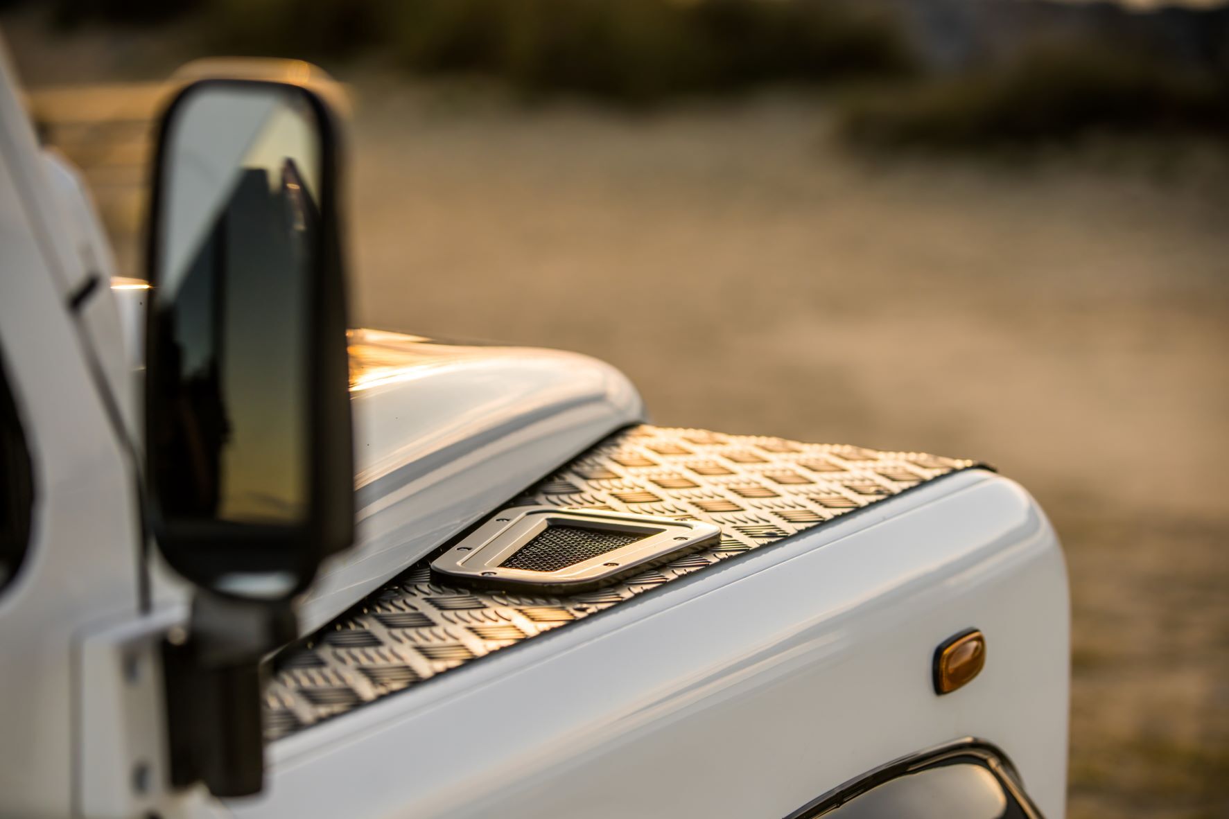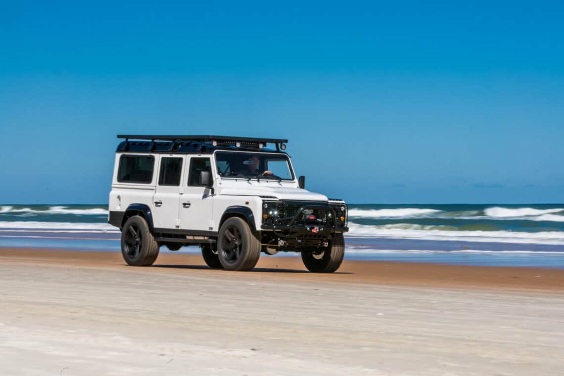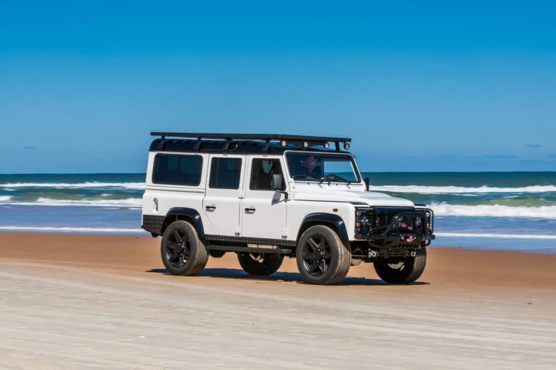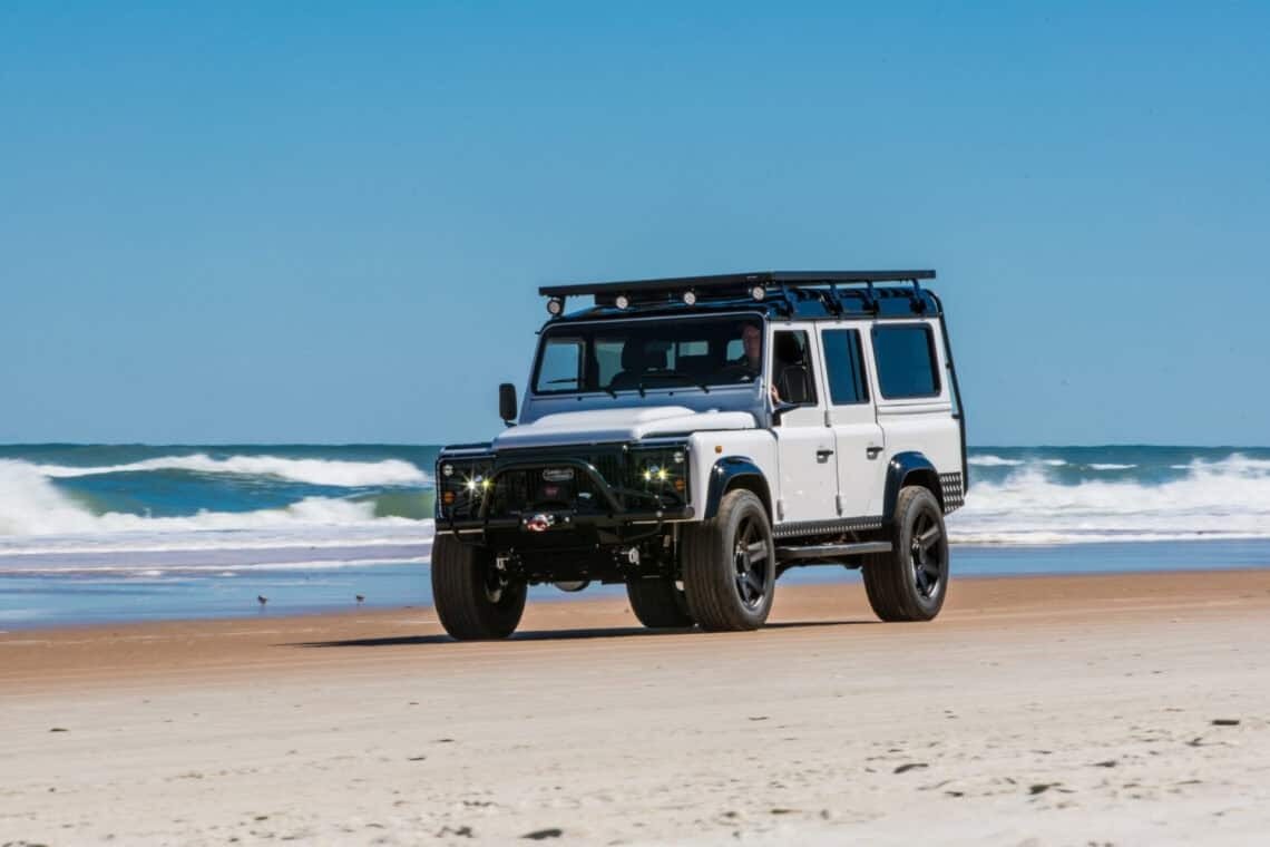 This custom ECD Defender 110 build is known as Project Alpaca! It is finished in Super White gloss and powered by a 6.2L LS3 V8 and it is paired to an automatic transmission. This Defender 110 has 20″ ECD ADV1 custom wheels wrapped in BFGoodrich All-Terrain tires, custom ECD Air suspension, Frontrunner roof rack and a Warn winch. The interior is highlighted by a pair of Puma classic seats in the front with a matching 60/40 bench in the mid row. All seats are wrapped in Nappa Schwarz leather accented by a white diamond stitch design. The interior is also accentuated by the leather wrapped puma dash, a Nardi steering wheel, wireless charging pad, MUD UK glovebox and headliner to match the seats. Other key features to give this truck a modern feel are a Sony infotainment system with Sirius XM, a full JL Audio high end sound system, white faced Classic Instrument gauges, Brembo brakes, and much more.