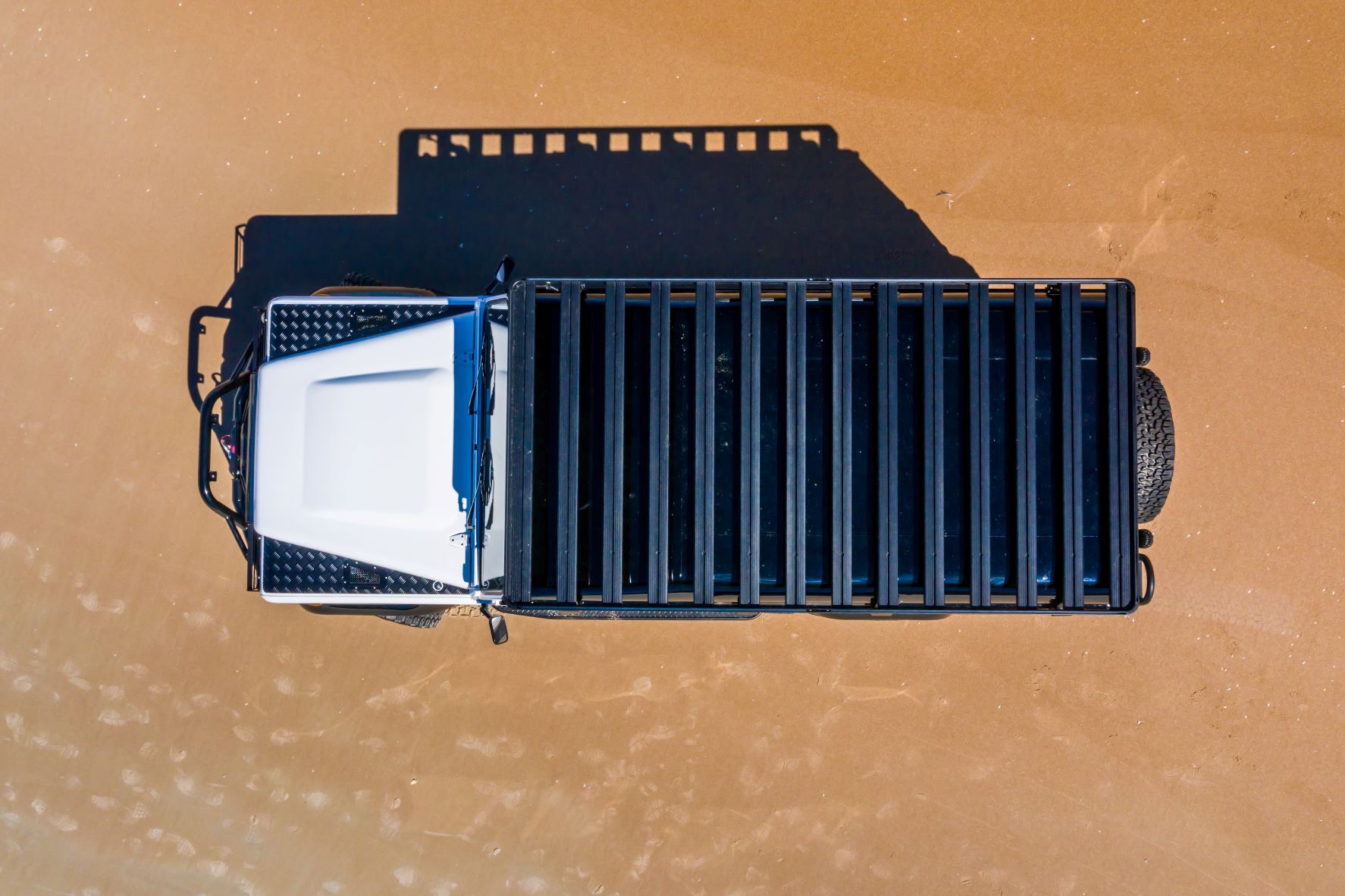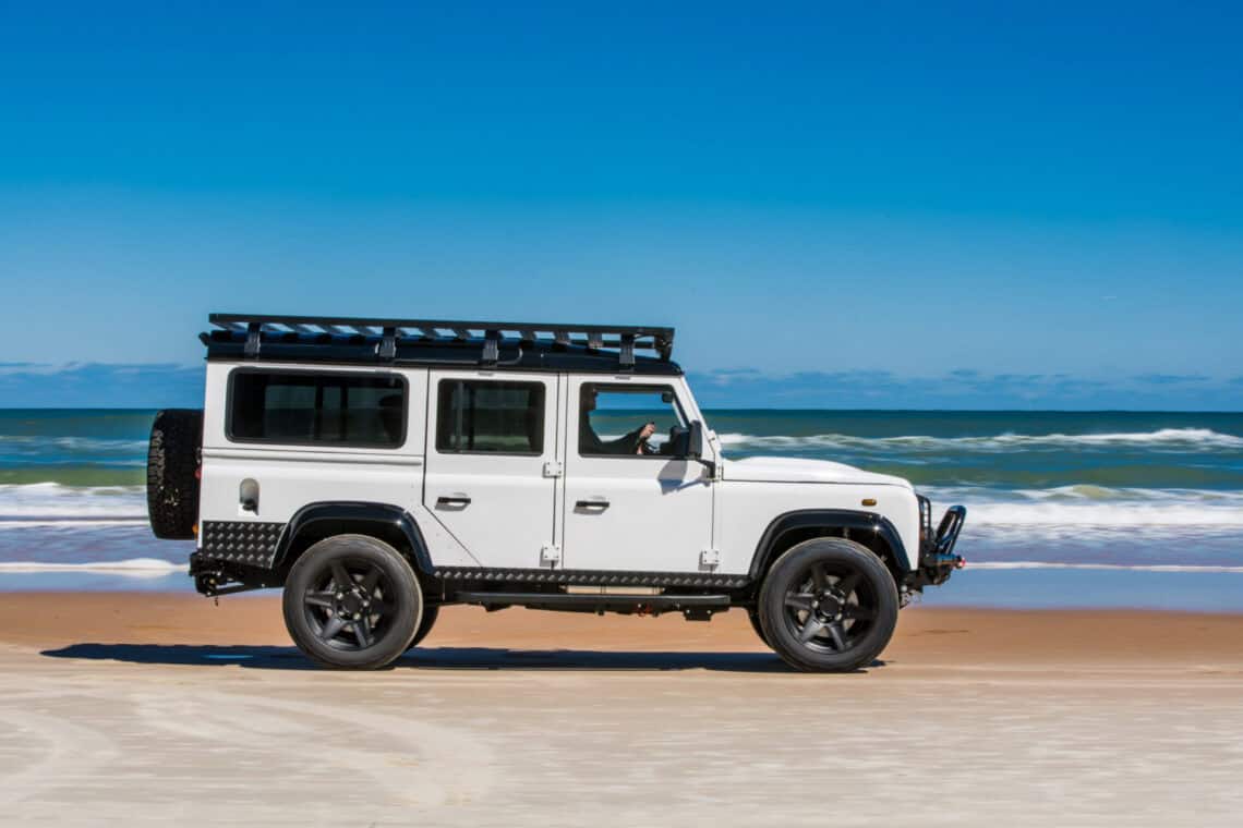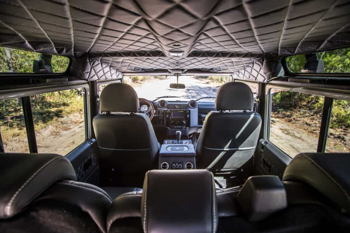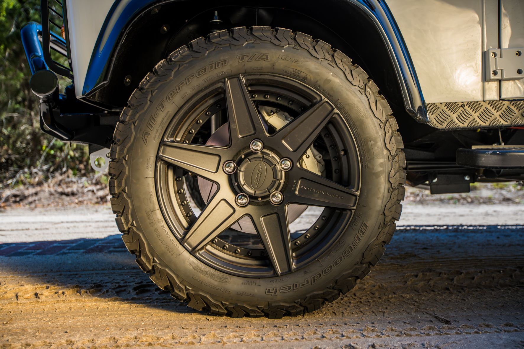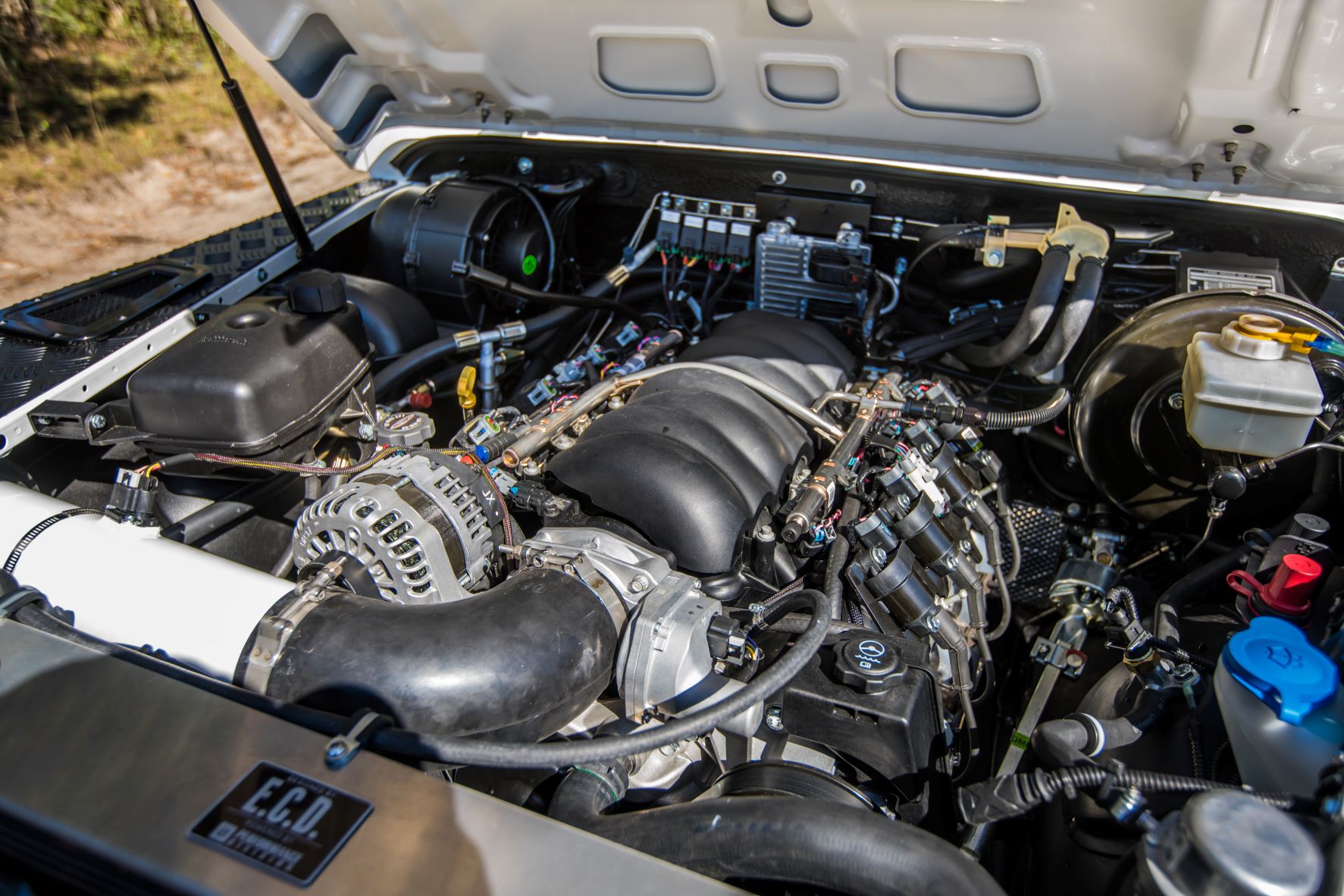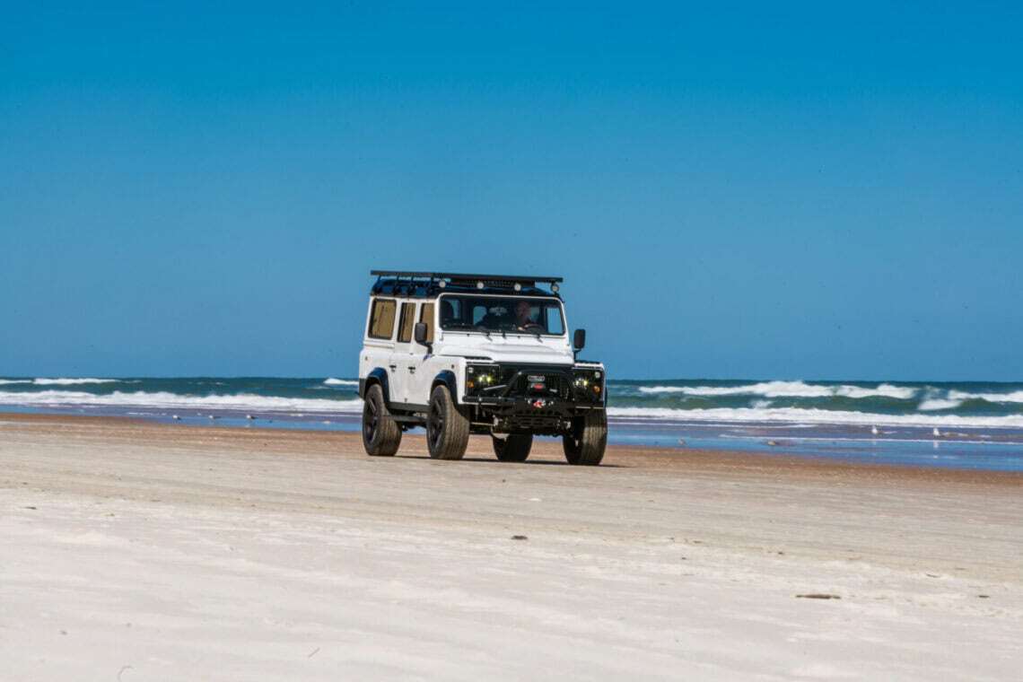 This custom ECD Defender 110 build is known as Project Alpaca! It is finished in Super White gloss and powered by a 6.2L LS3 V8 and it is paired to an automatic transmission. This Defender 110 has 20″ ECD ADV1 custom wheels wrapped in BFGoodrich All-Terrain tires, custom ECD Air suspension, Frontrunner roof rack and a Warn winch. The interior is highlighted by a pair of Puma classic seats in the front with a matching 60/40 bench in the mid row. All seats are wrapped in Nappa Schwarz leather accented by a white diamond stitch design. The interior is also accentuated by the leather wrapped puma dash, a Nardi steering wheel, wireless charging pad, MUD UK glovebox and headliner to match the seats. Other key features to give this truck a modern feel are a Sony infotainment system with Sirius XM, a full JL Audio high end sound system, white faced Classic Instrument gauges, Brembo brakes, and much more.